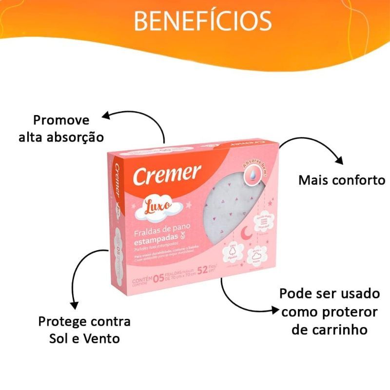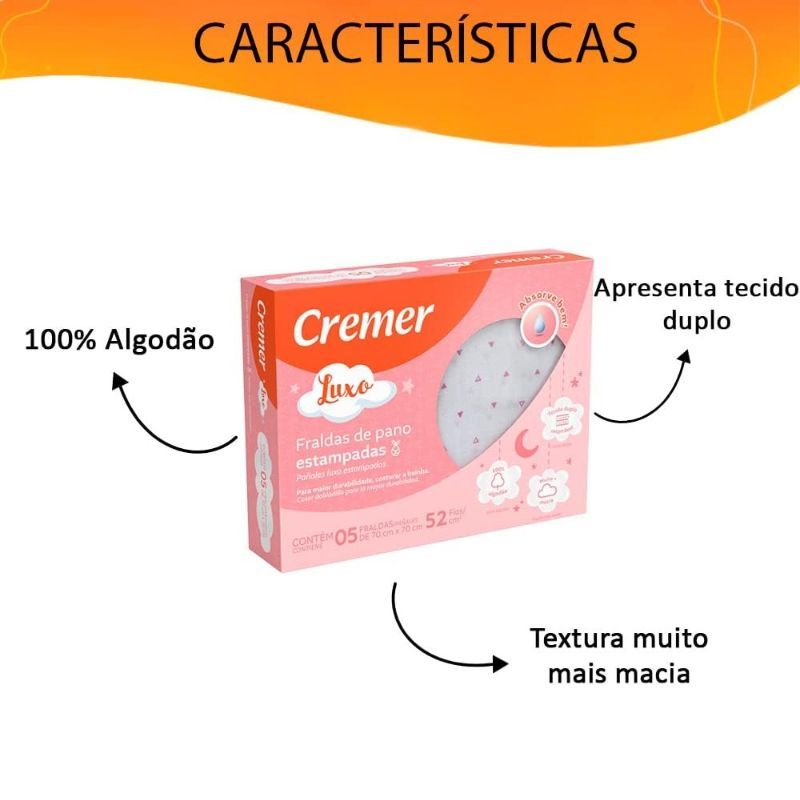 Pacote 5 Fraldas Luxo 100% Algodão Estampas 70x70cm Super Macia- Cremer