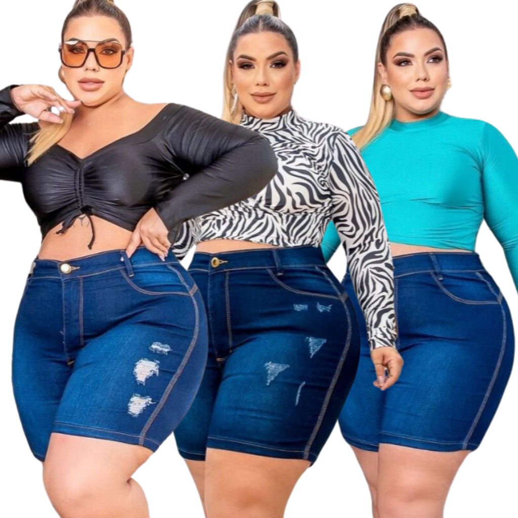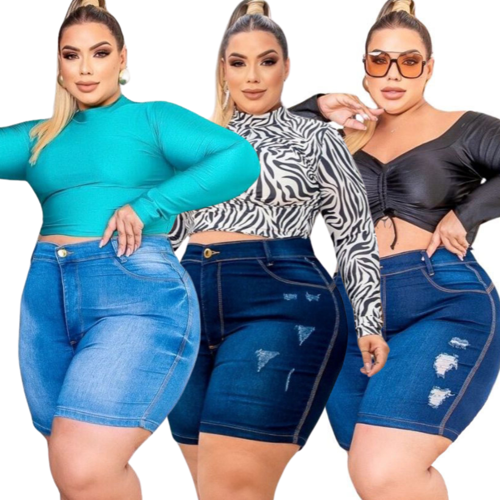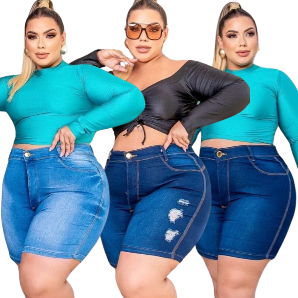 Kit 3 Bermudas Jeans Plus Size Com Lycla