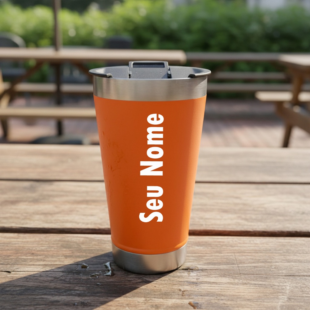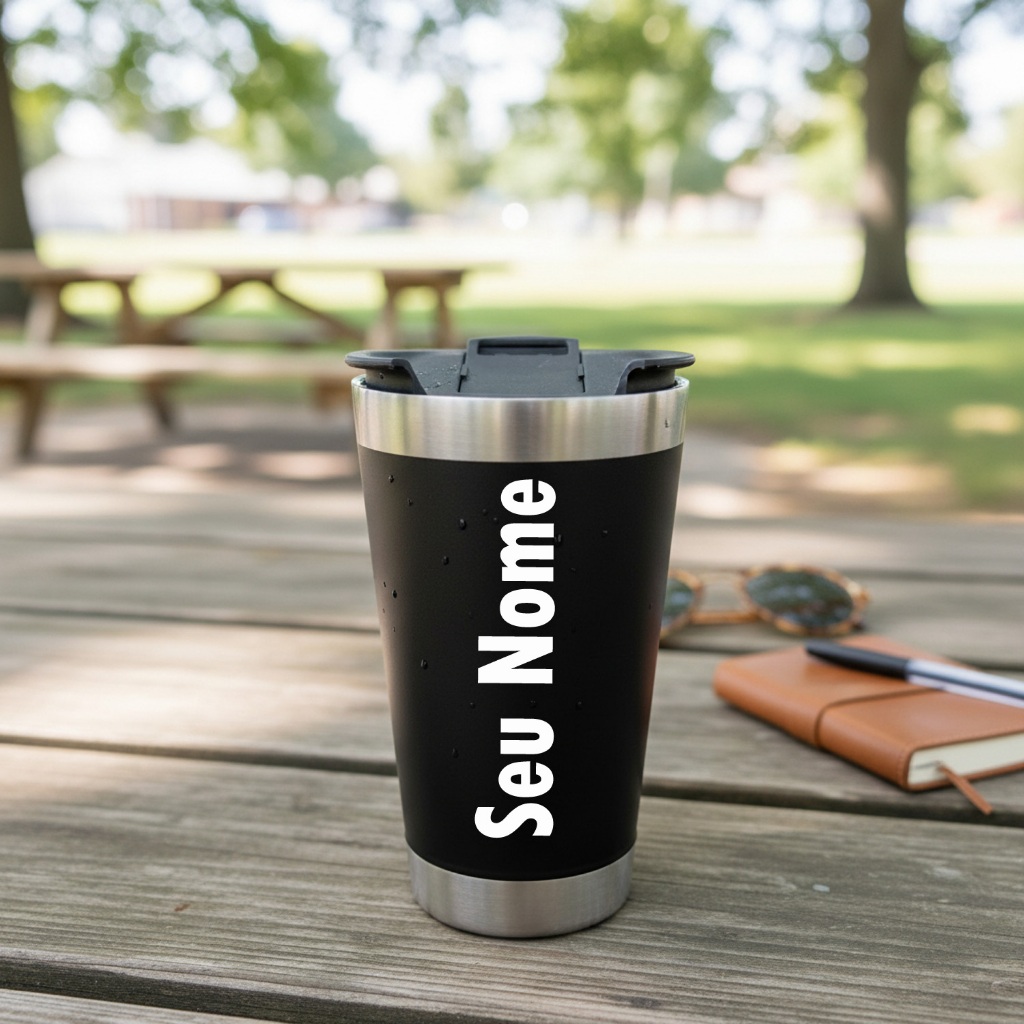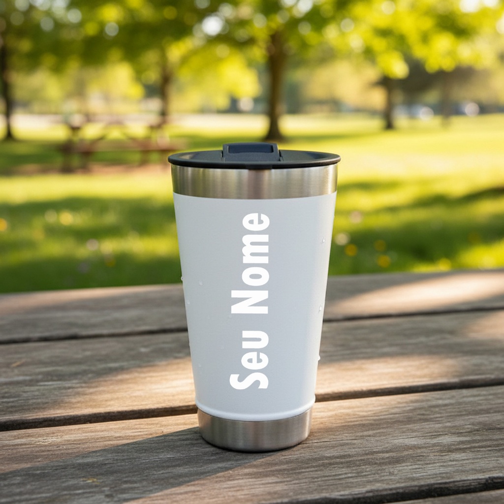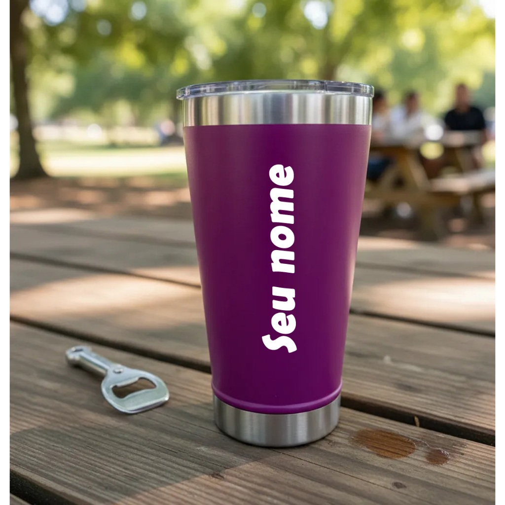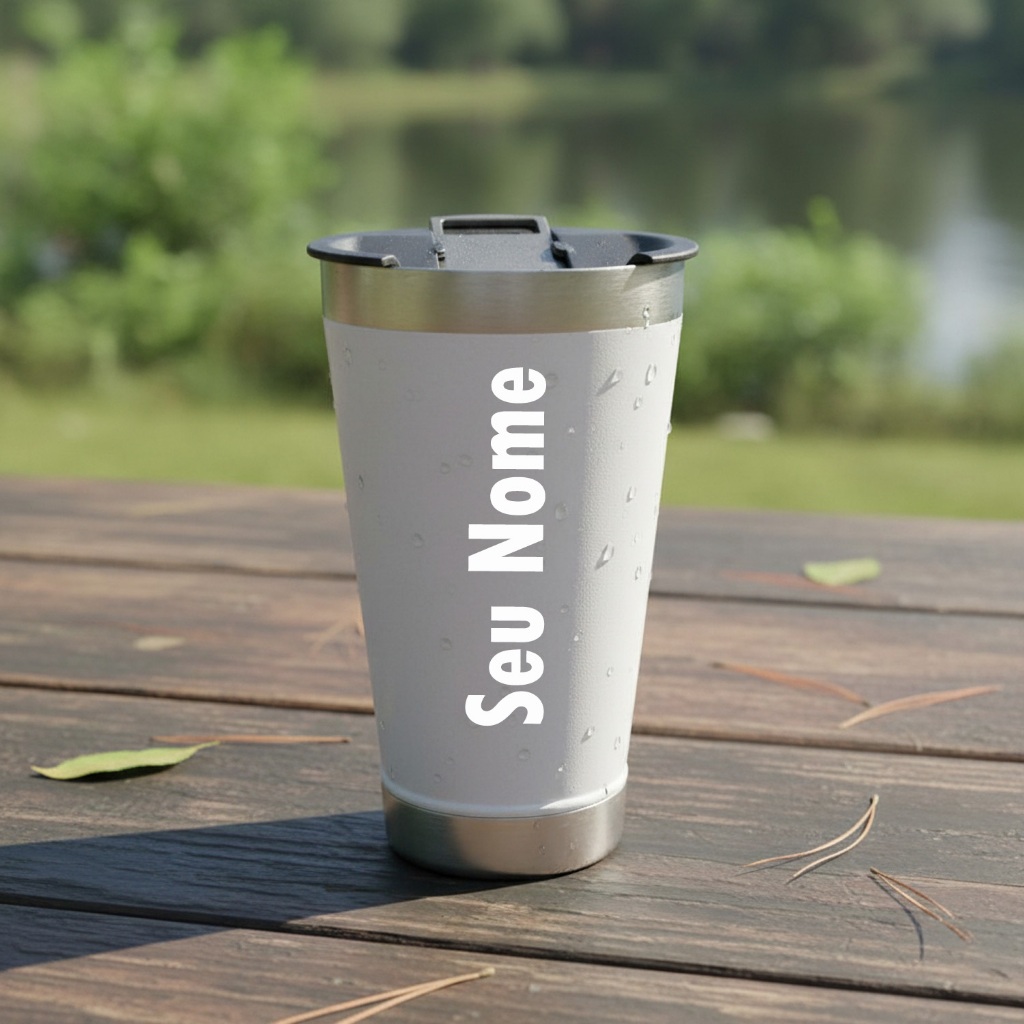 Copo Térmico De Cerveja 473ml Com Tampa E Abridor Aço Inox com seu nome
