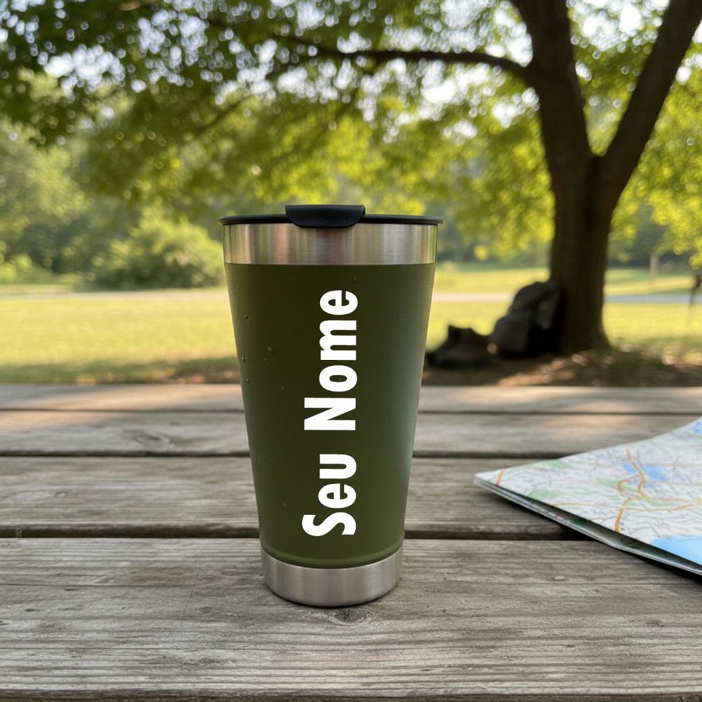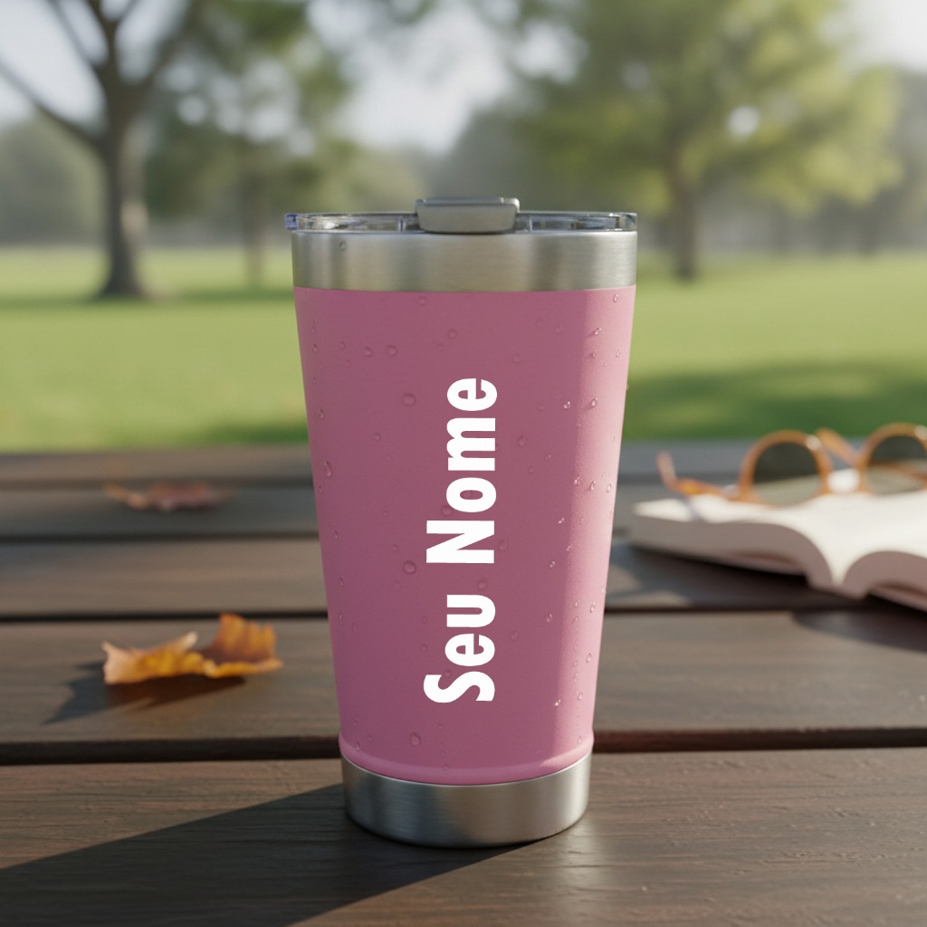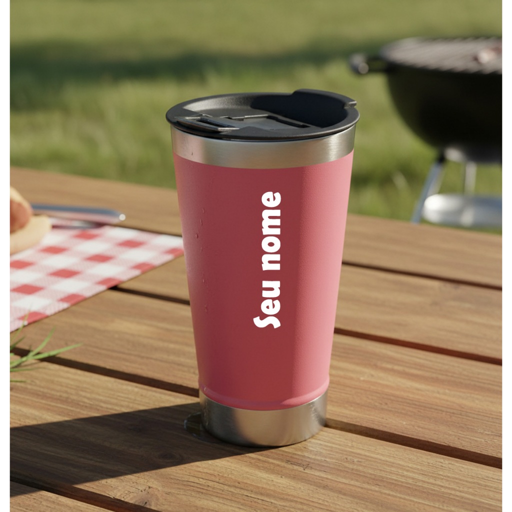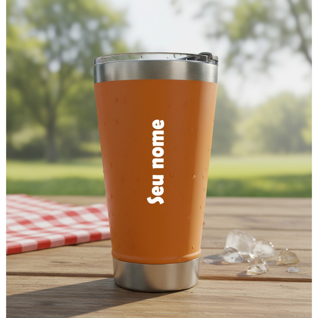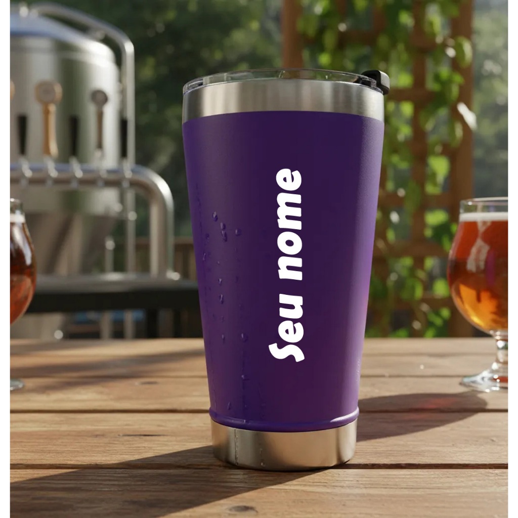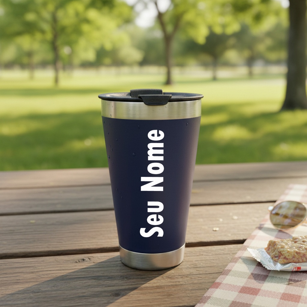Copo Térmico De Cerveja 473ml Com Tampa E Abridor Aço Inox com seu nome
