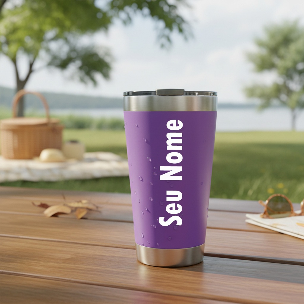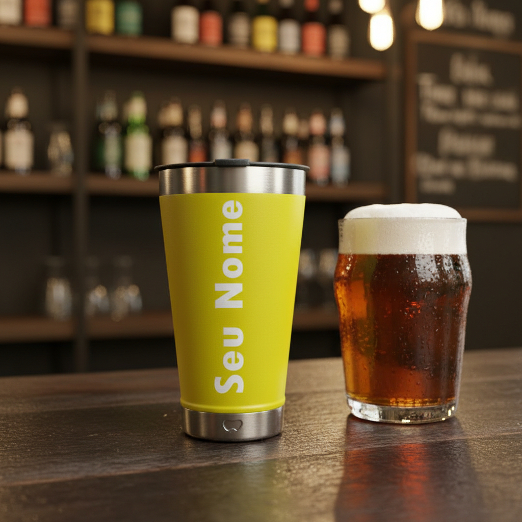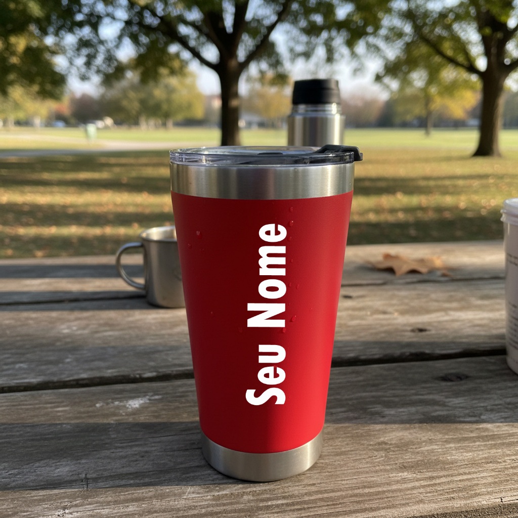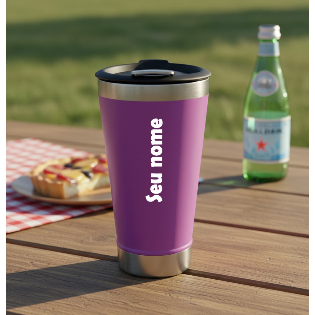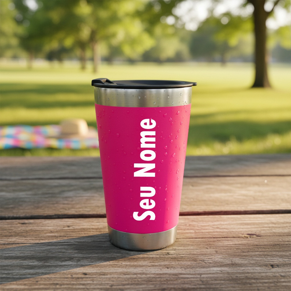 Copo Térmico De Cerveja 473ml Com Tampa E Abridor Aço Inox com seu nome