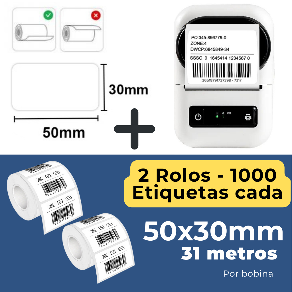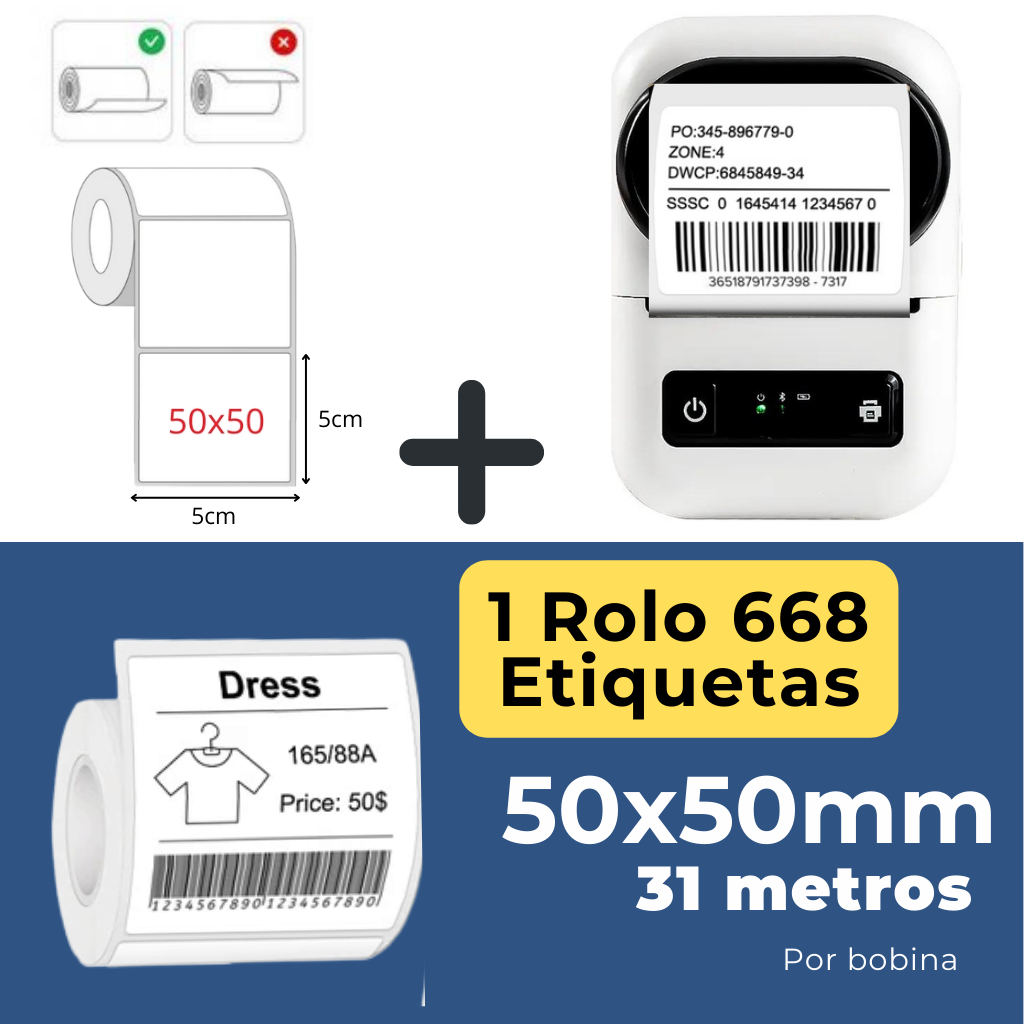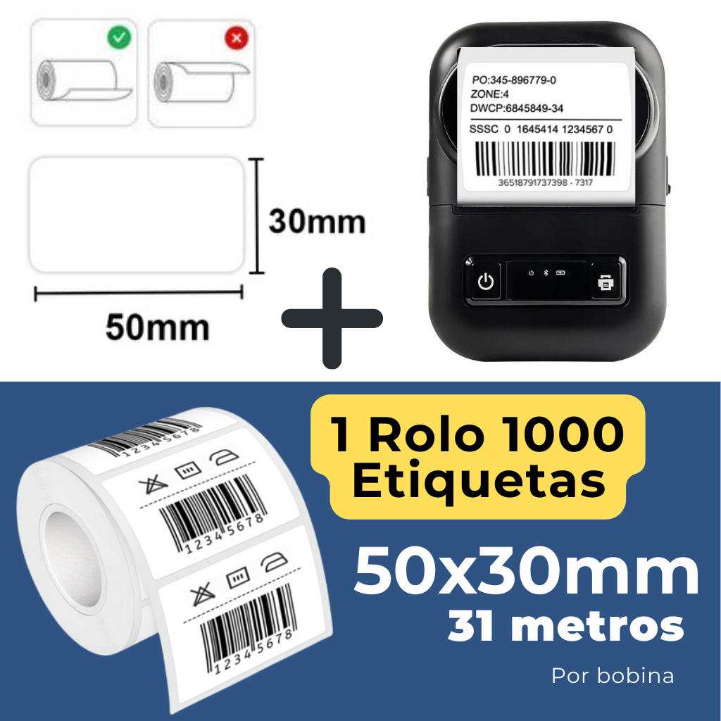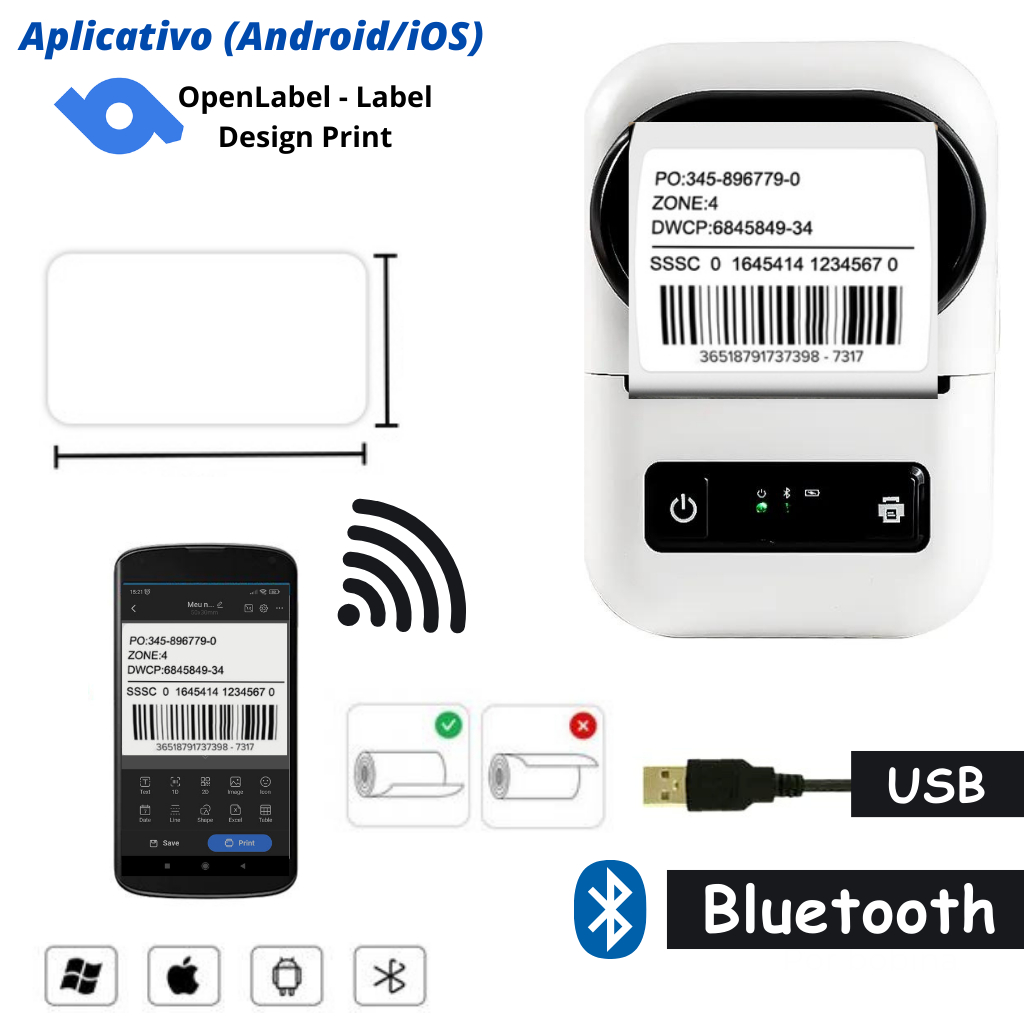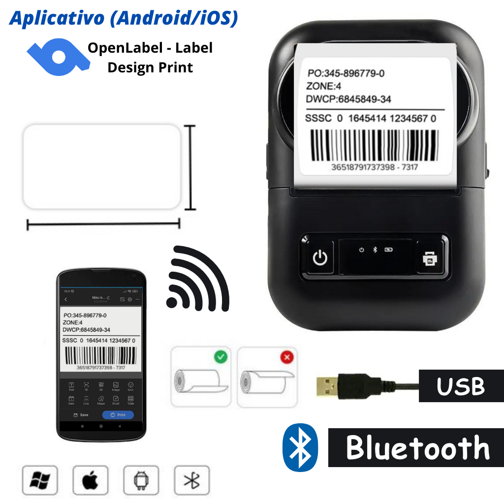 Impressora de Etiquetas Inteligente Térmica Bluetooth Sem Tinta iOS Android