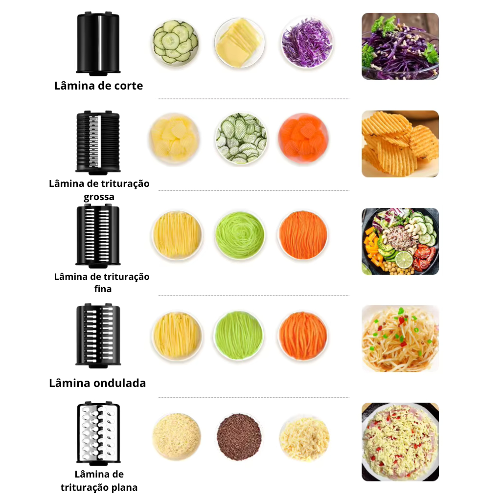 Máquina Cortador Ralador Triturador Cozinha Elétrico Profissional 5 em 1