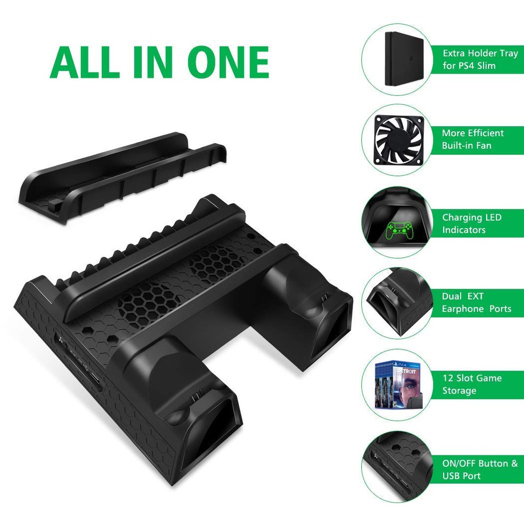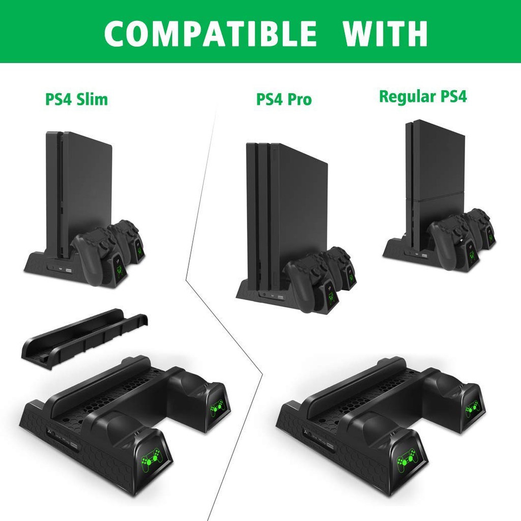 Base Vertical Para Ps4 Slim Pro Cooler Carregador Com Leds
