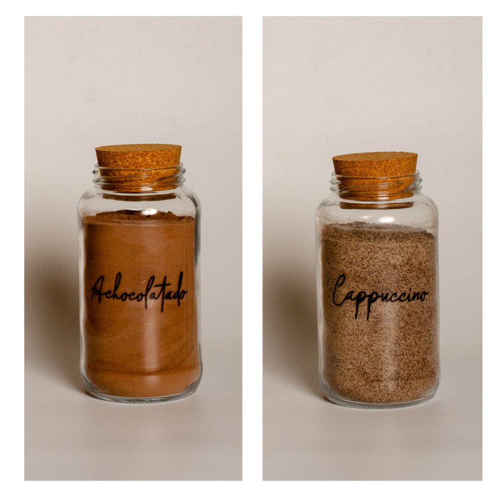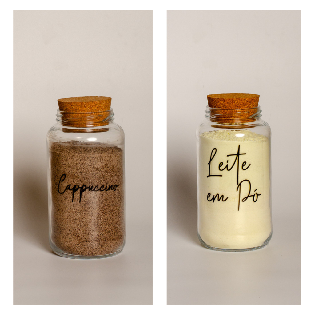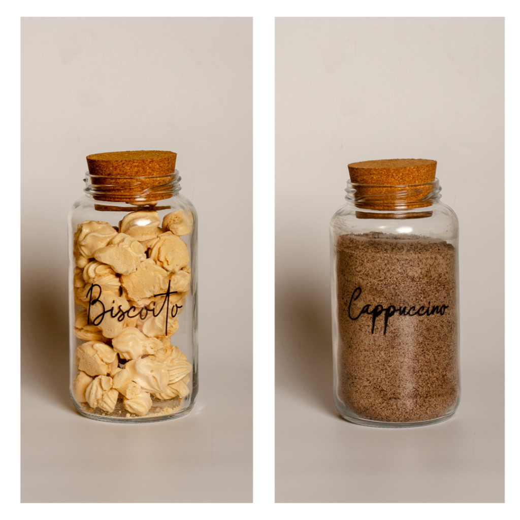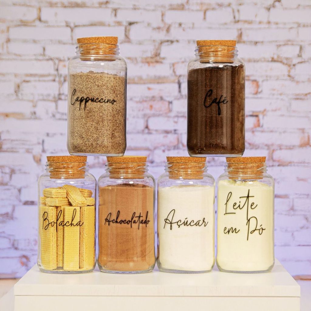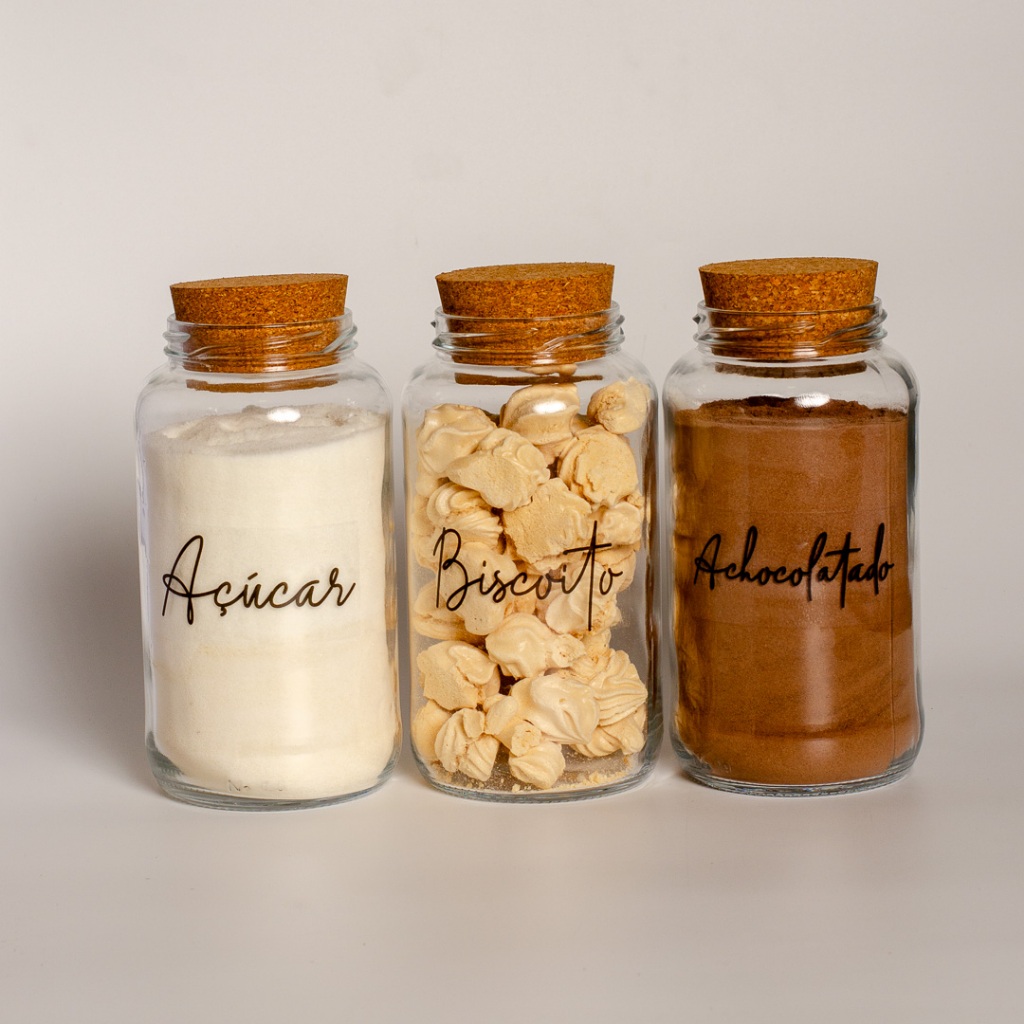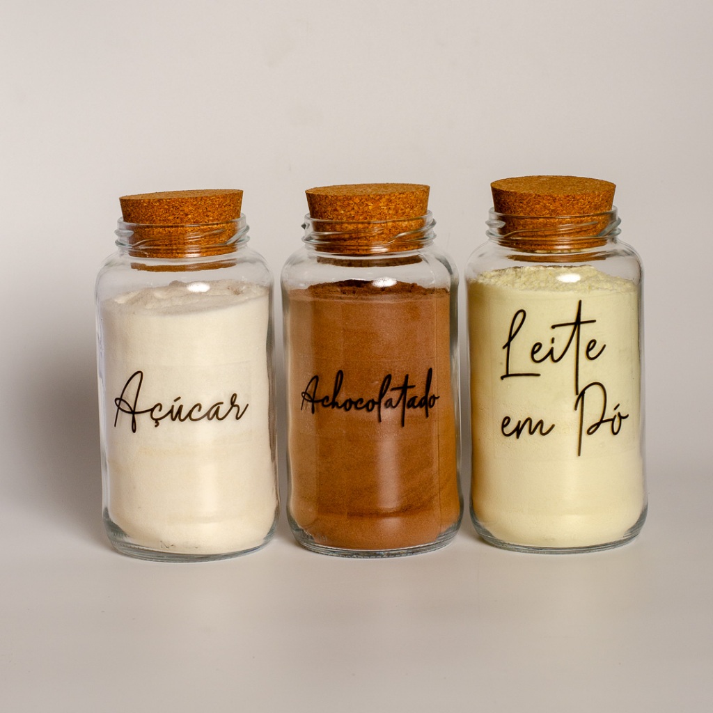 Kit Cantinho do Café - ESCOLHA SEU KIT - Potes de Vidro 830 ml com Tampa de Cortiça + Adesivos