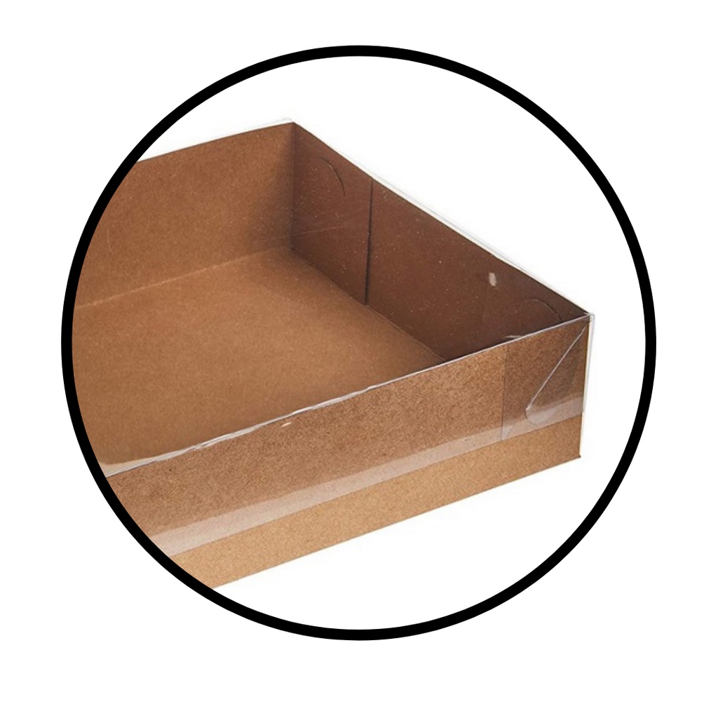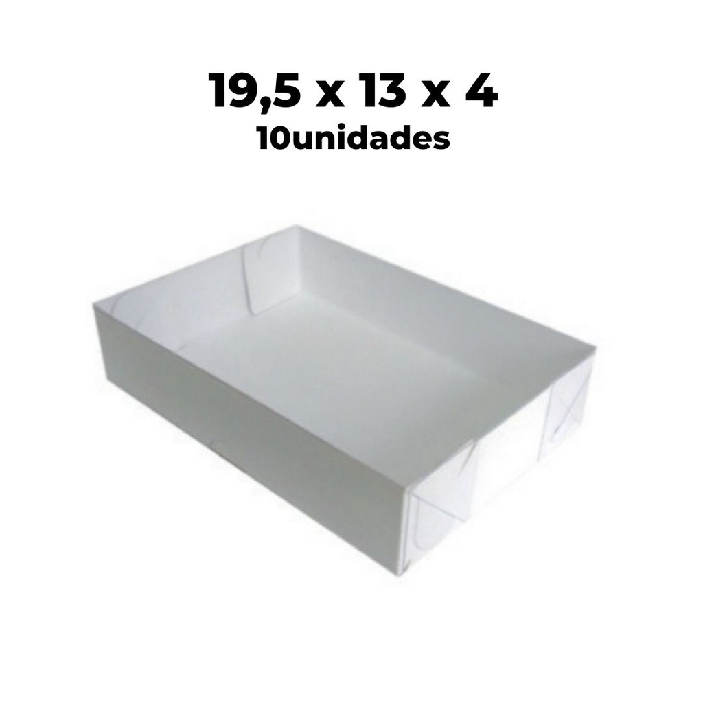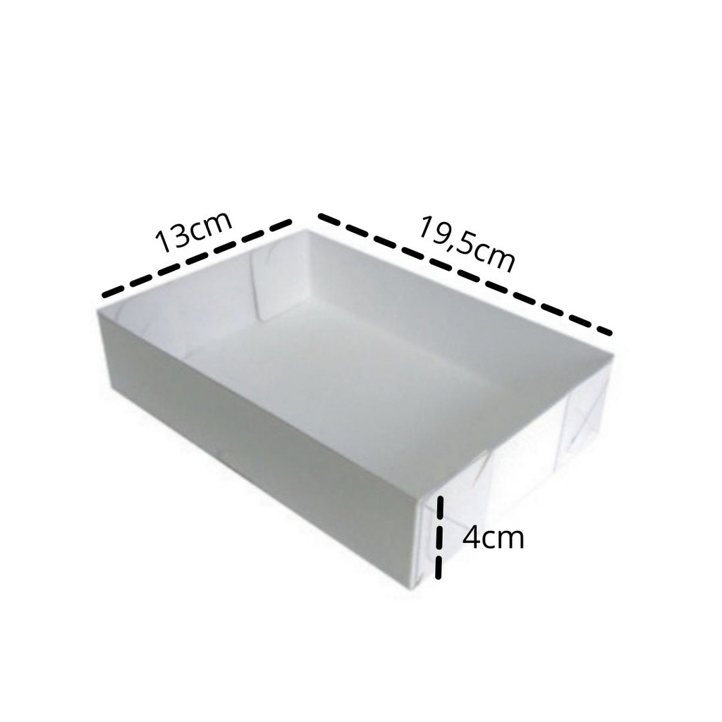 Caixa com Visor - Tampa PVC Transparente Retangular N.04 Branca 19.5x13x4 com 10 unidades - (Kraft - Doces - Acetato)
