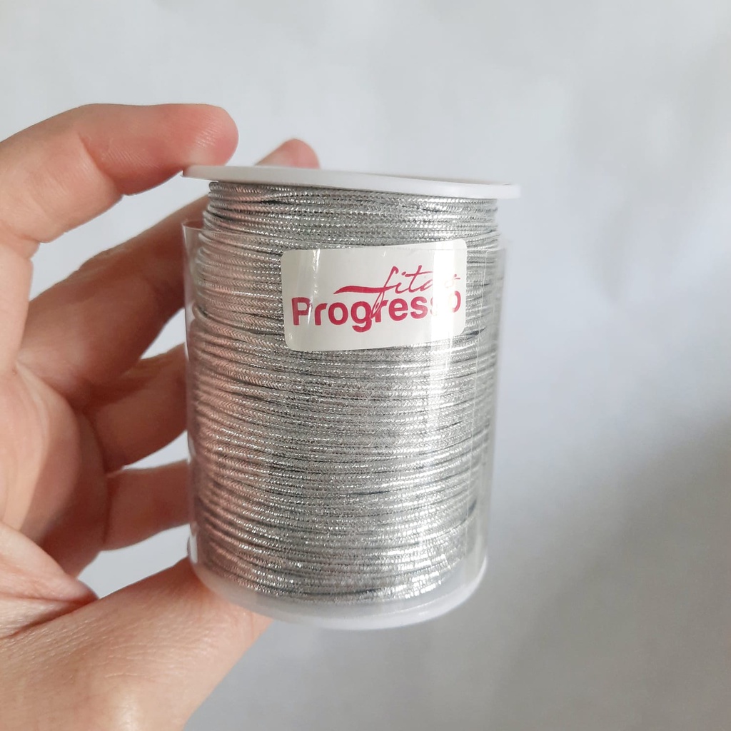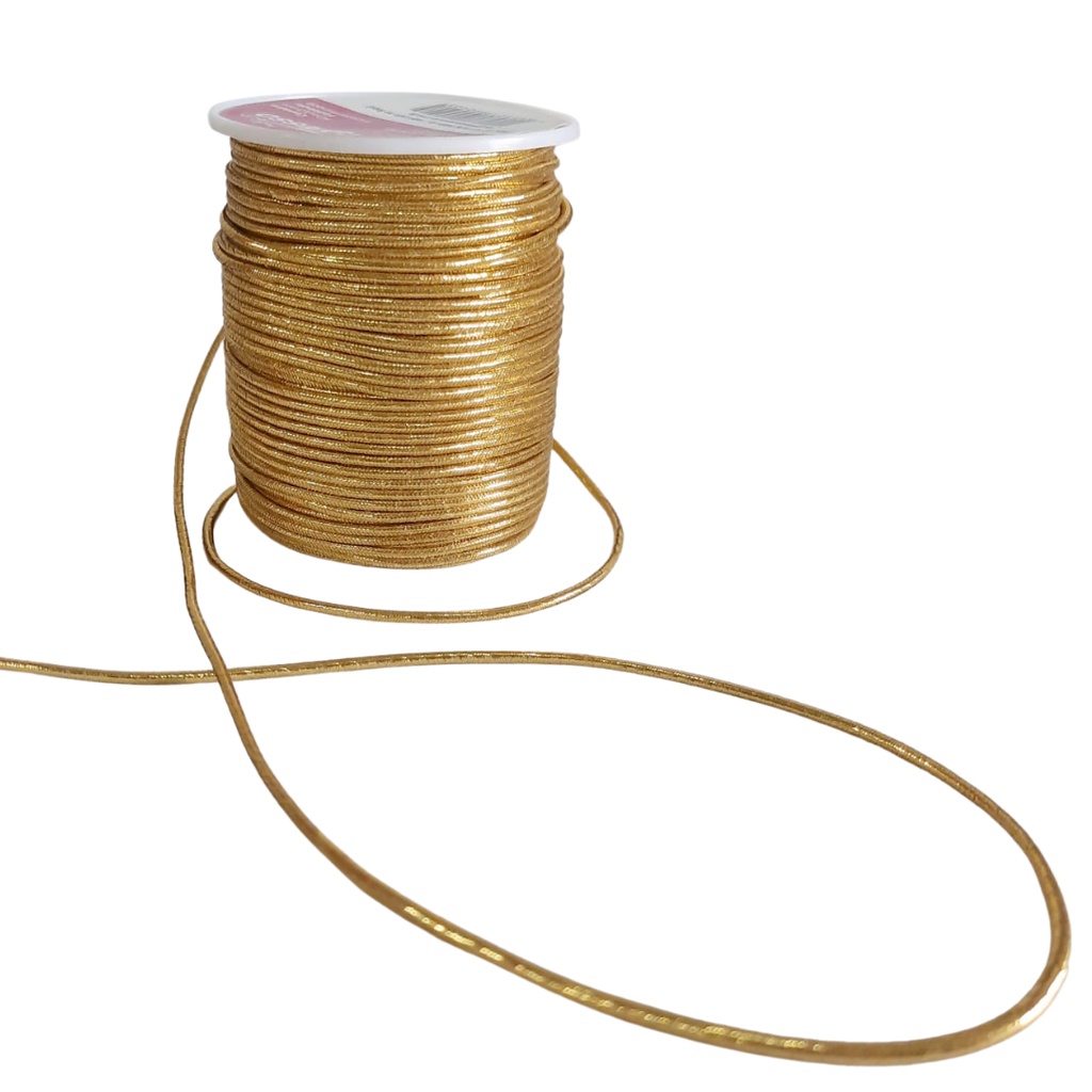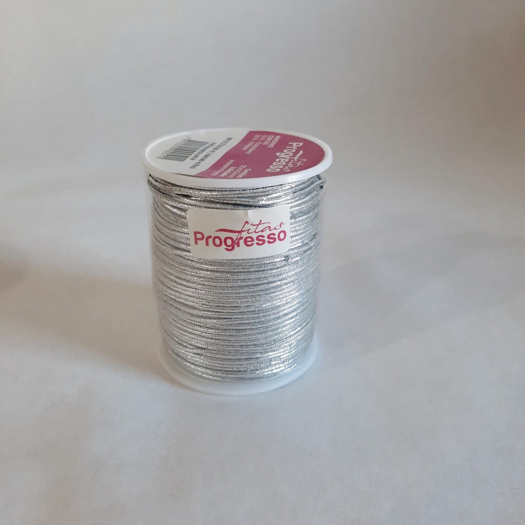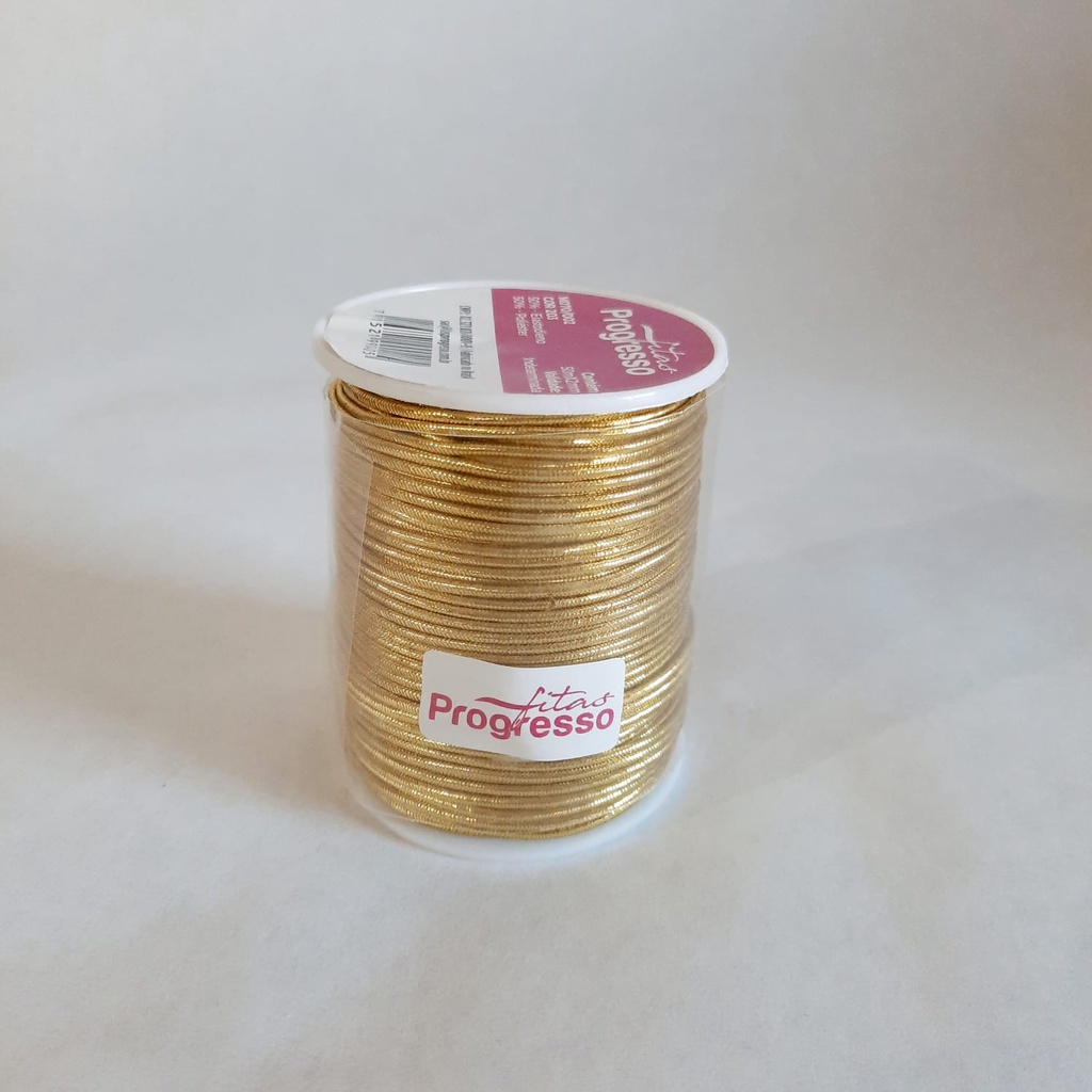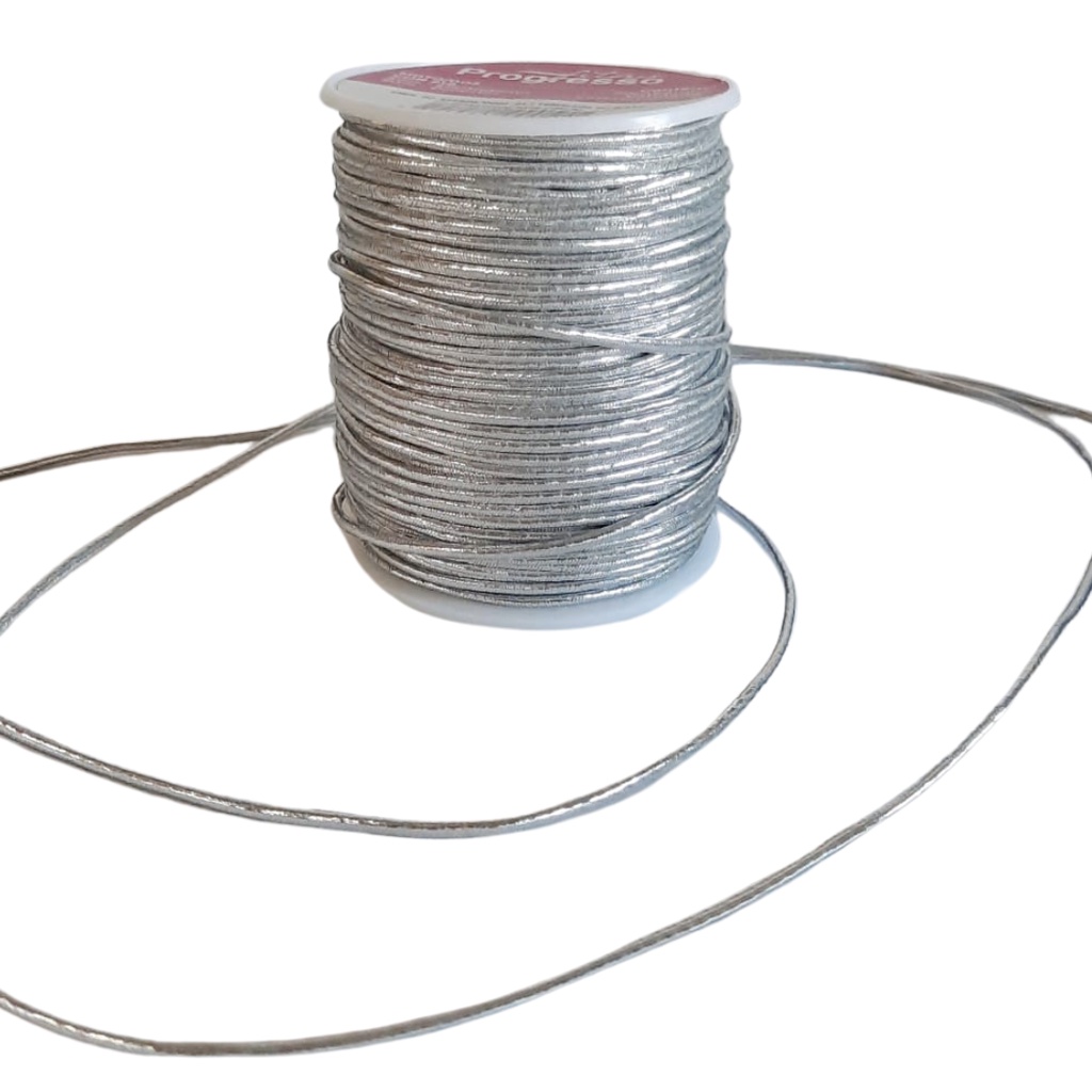 Cordão Elástico Roliço Metalizado Progresso 2mm 50 metros Prata Dourado