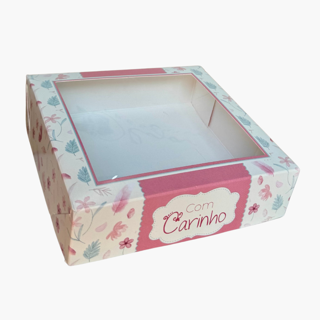 Caixa com Visor Acetato Quadrada 15x15x4 Olga Doce Flor Com Carinho c/10un