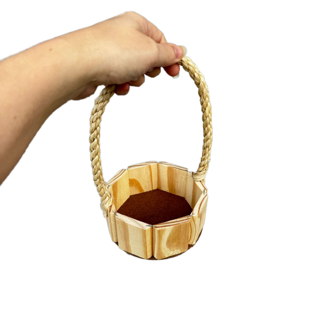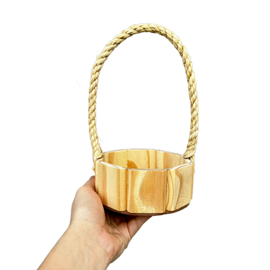 kit 35 unidades Cesta de Madeira Redonda com Alças de Sisal Reforçada com Arame