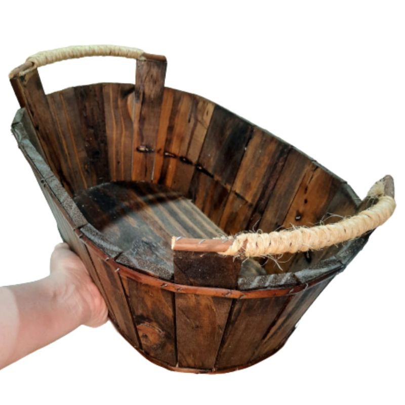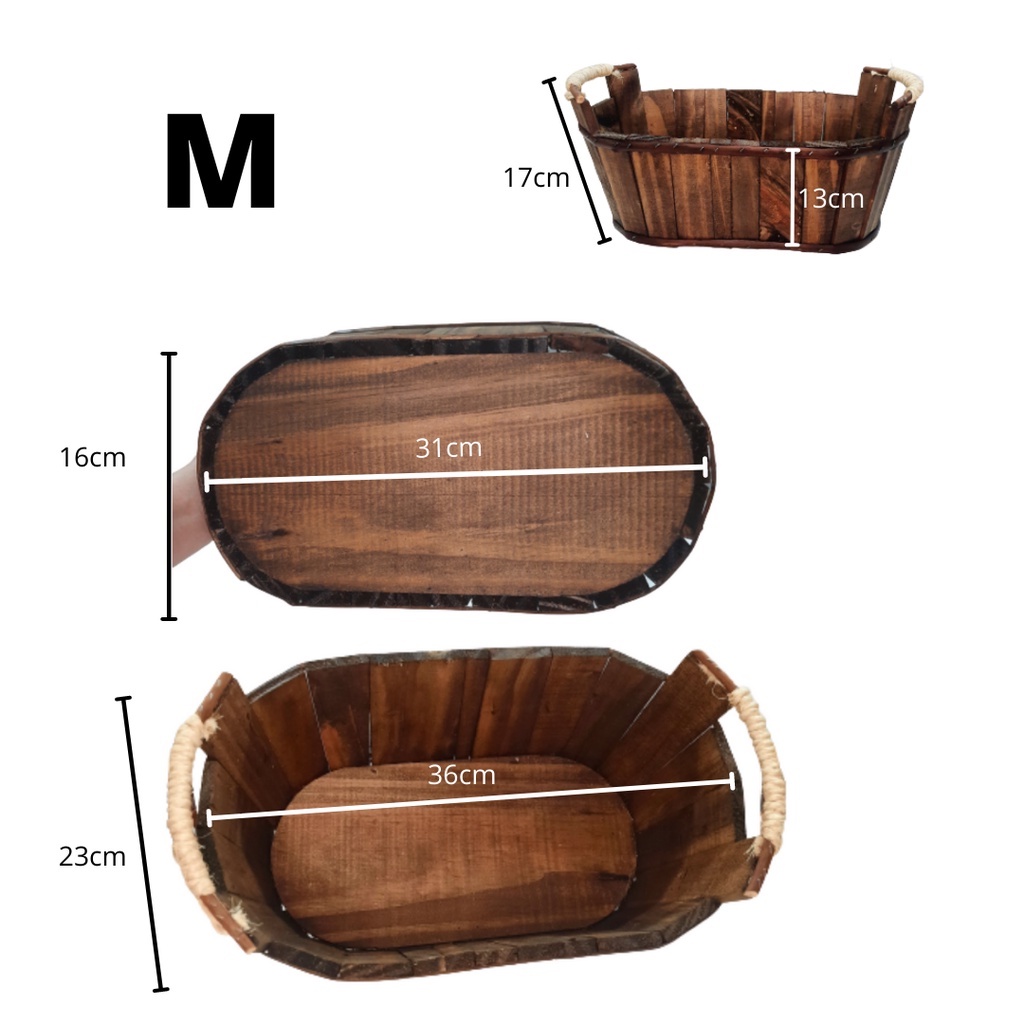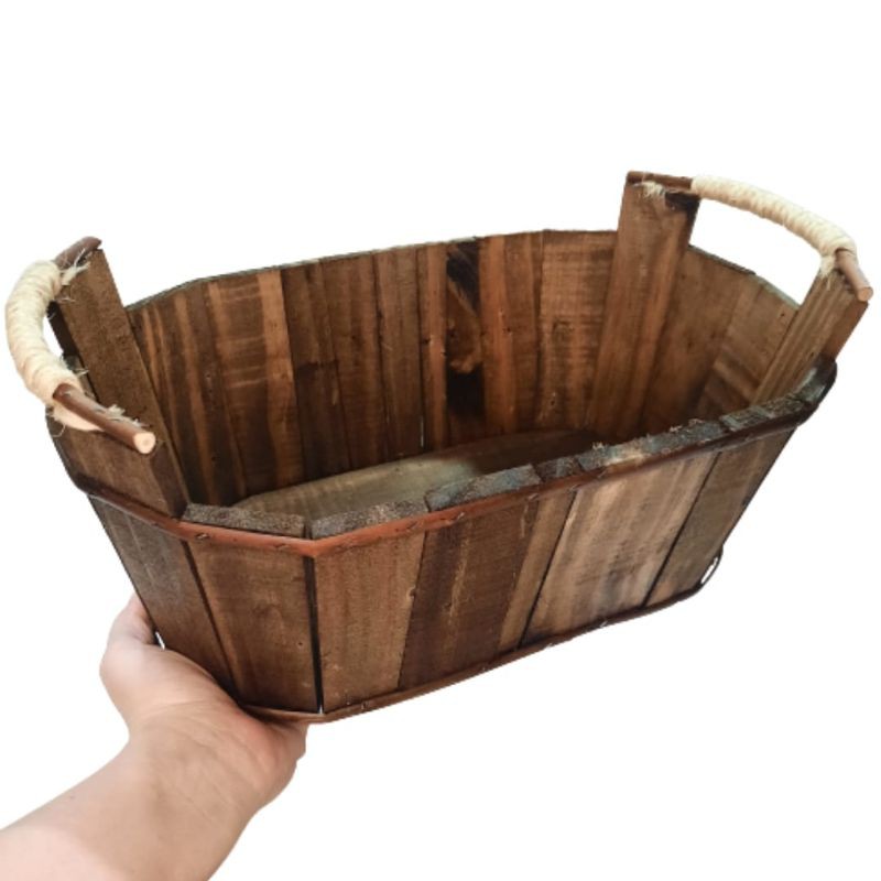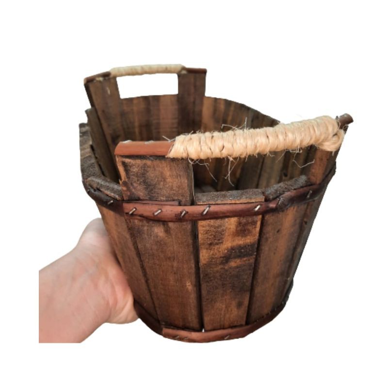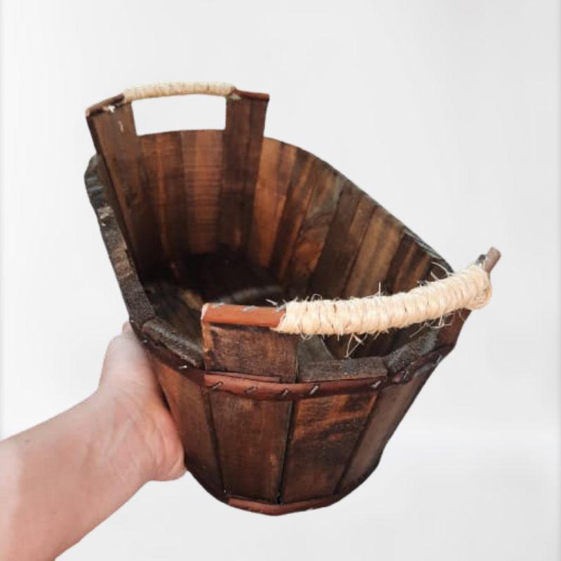 Cesta / Tina / Balde /de Madeira Rústica com detalhes de Sisal