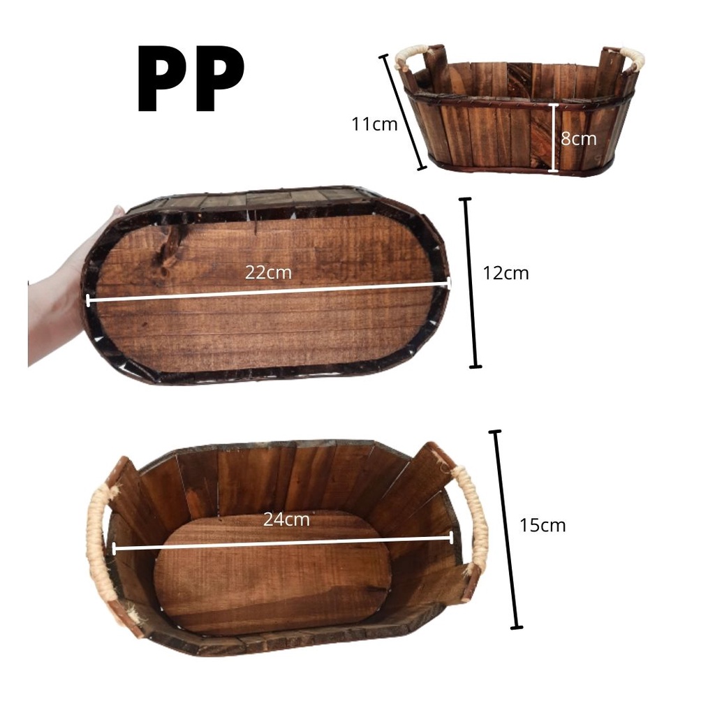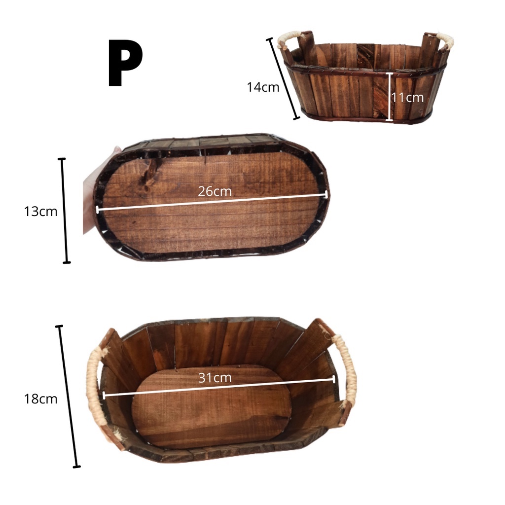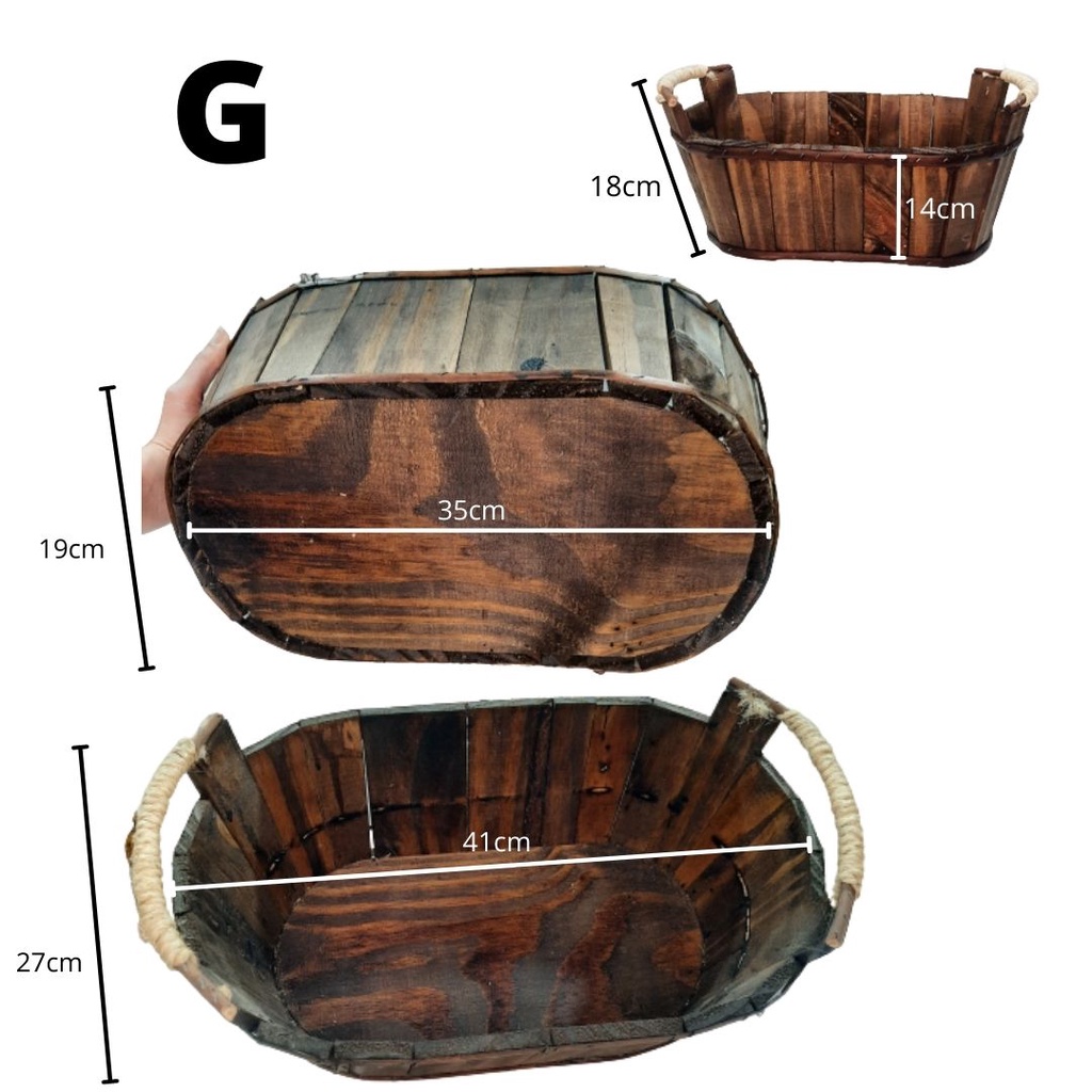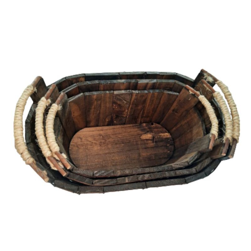Cesta / Tina / Balde /de Madeira Rústica com detalhes de Sisal