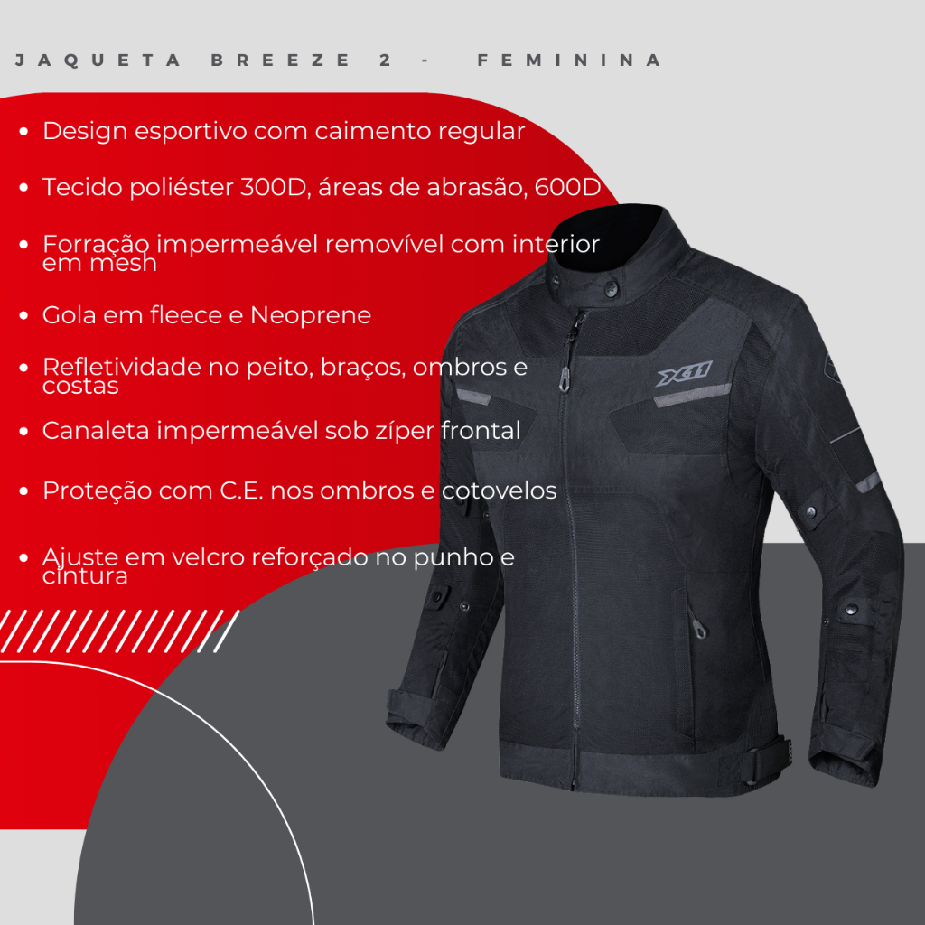 Jaqueta para Motociclista Com Proteções Original X11Modelo Breeze 2 100% Impermeável ou Ventilada