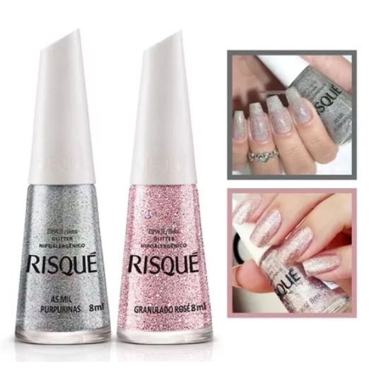 Esmalte Risqué Glitter As Mil Purpurinas E Granulado Rose
