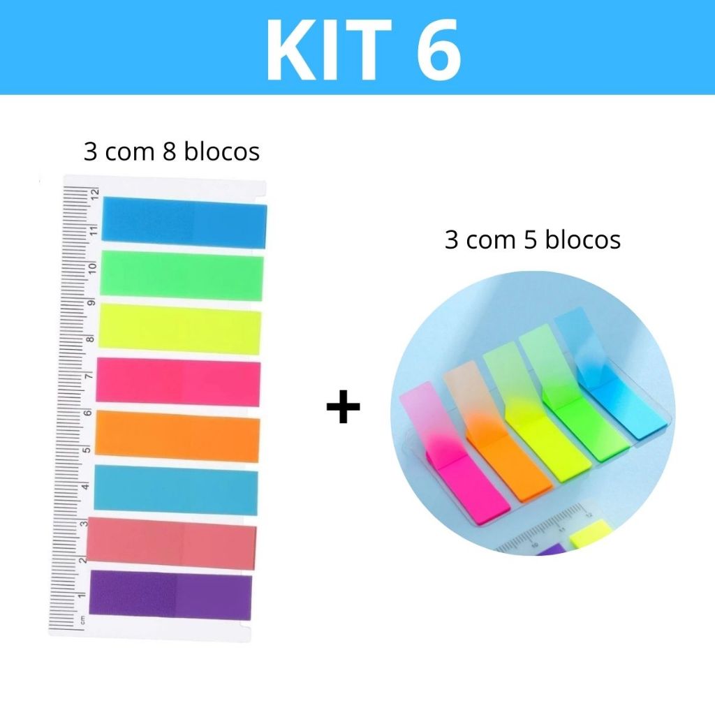 Kit 6 Marcador de página Diversas cores com régua de 12cm - Escritório/Casa/Escola/Faculdade