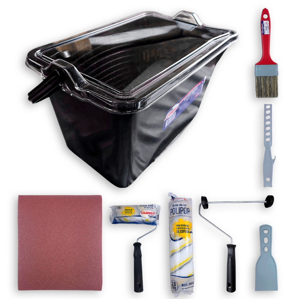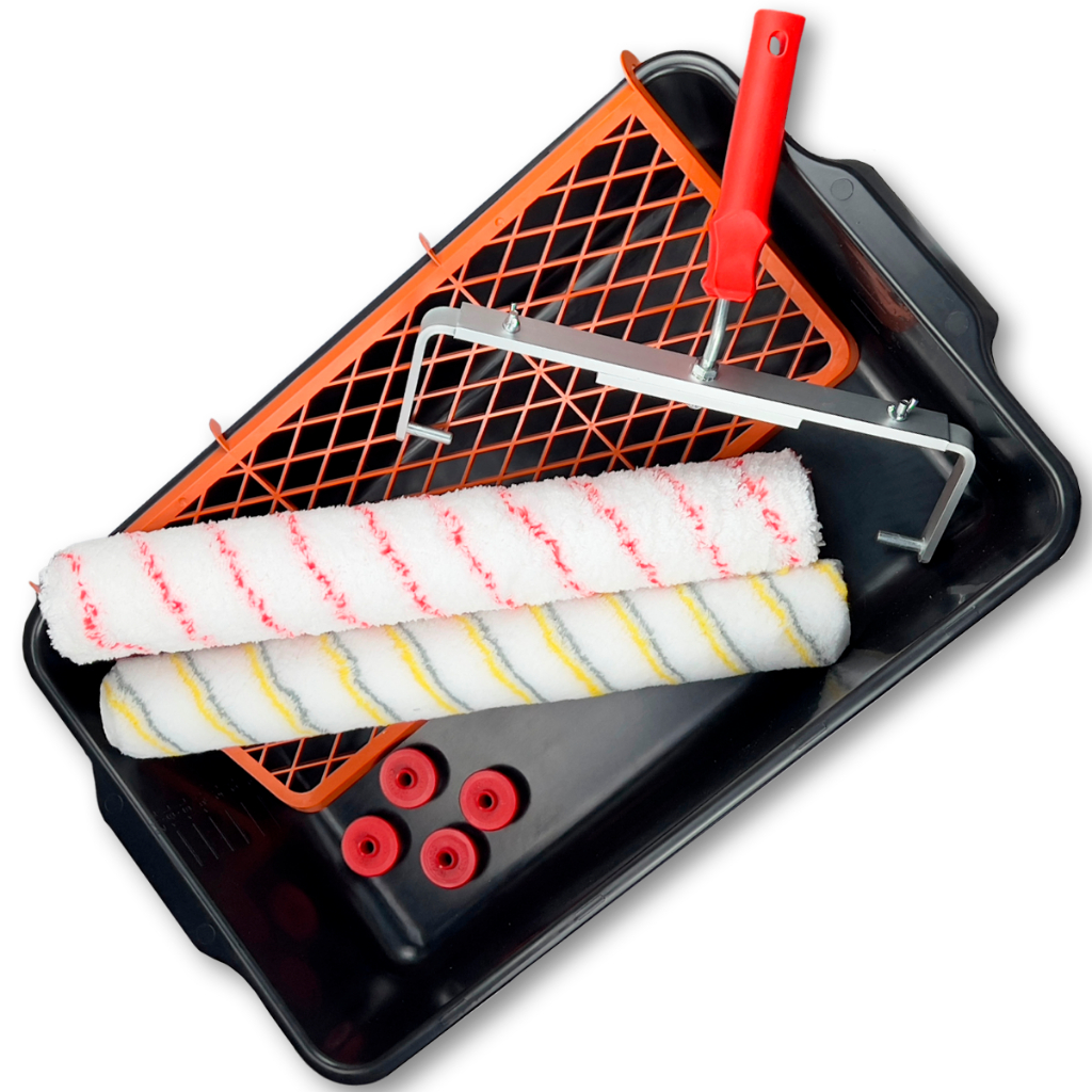 Kit para Pintura Compel para Parede com Bandeja + Suporte Duplo + Rolos para Pedreiros Pintores