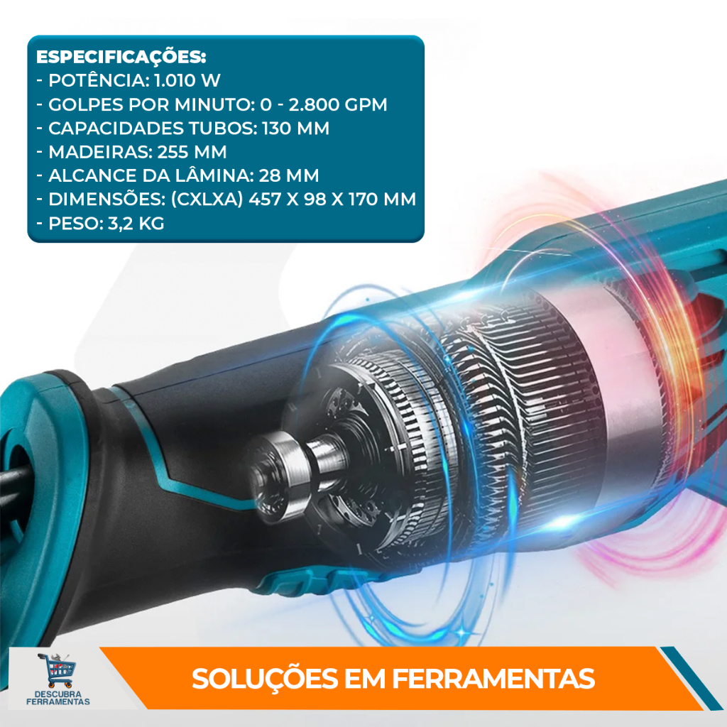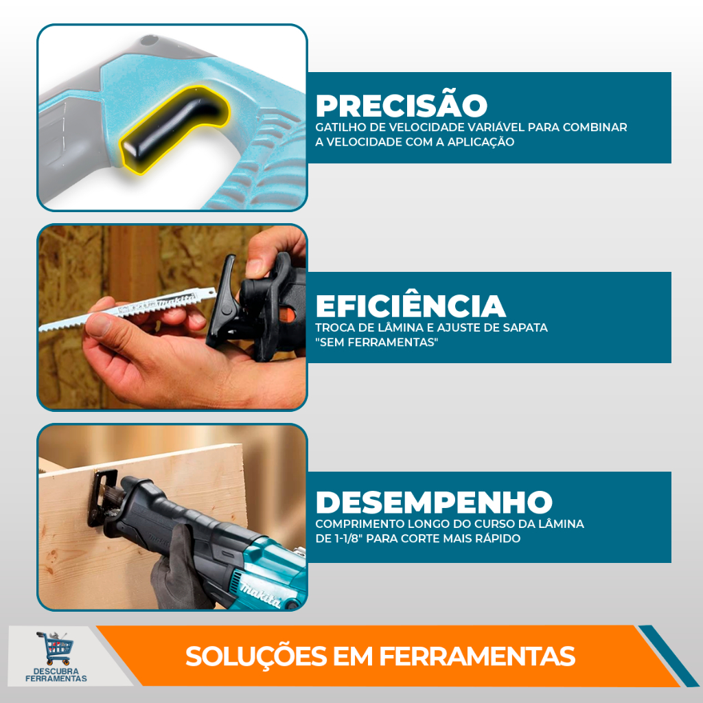 Serra Sabre Makita 1.200W para Cortes de Madeira Metal Tubos para Pedreiros JR3051TK M4501B