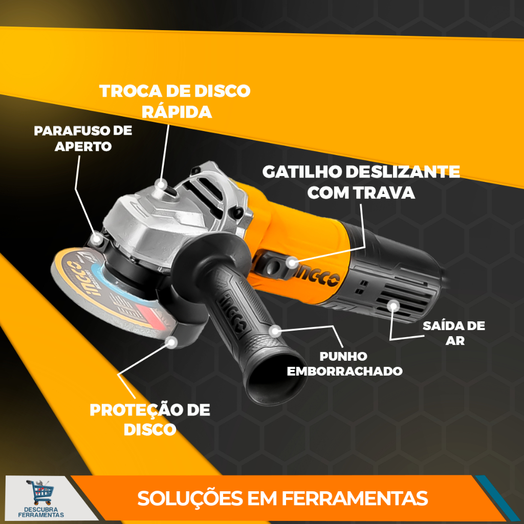 Esmerilhadeira Angular INGCO 750 W 115 mm com Protetor M14 – Alta Performance e Ergonomia