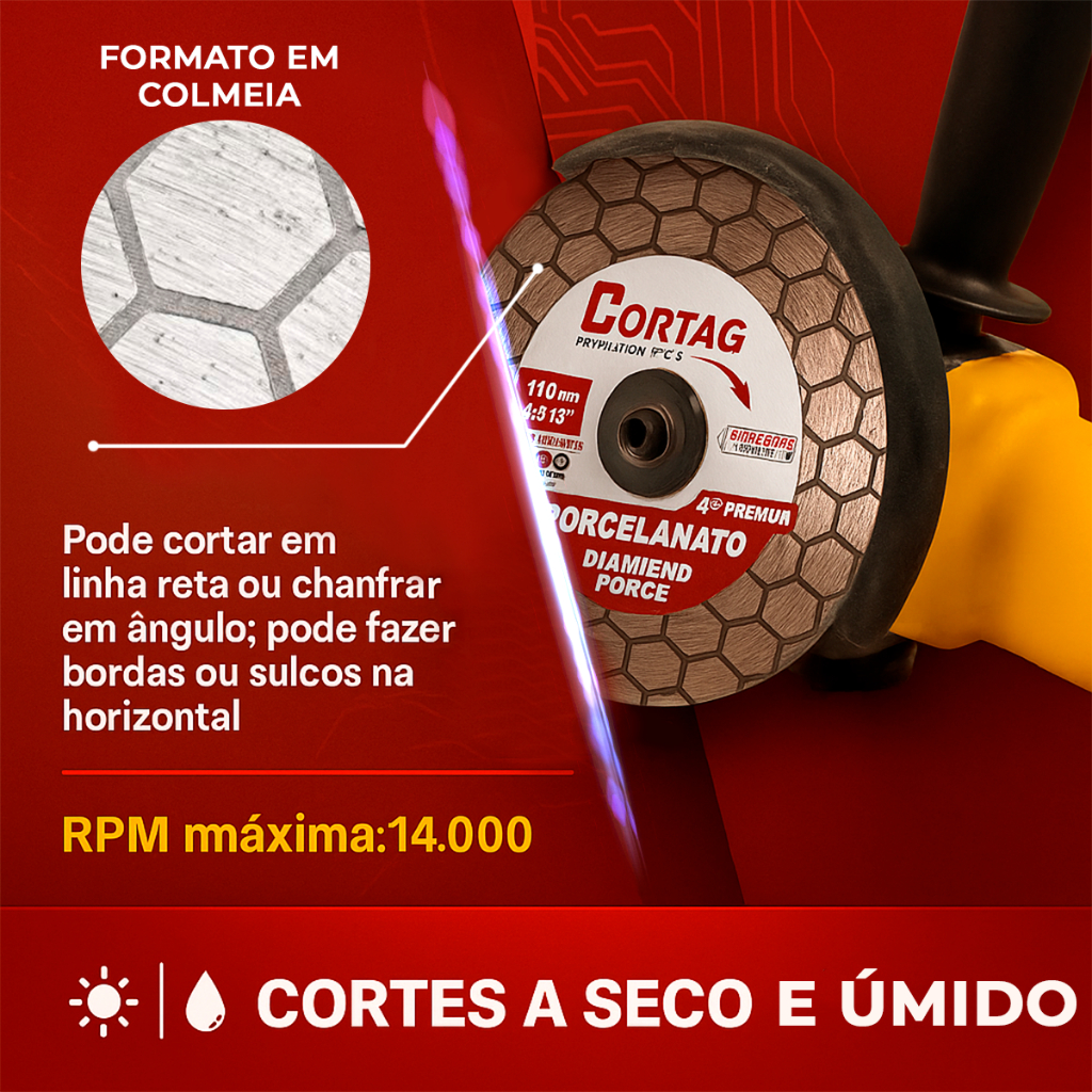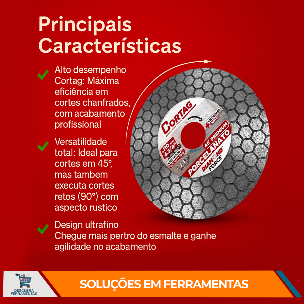 Disco Diamantado Cortag para Chanfro - 45° Premium Esmerilhadeira de Corte Seco/Refrigerado Pedreiro