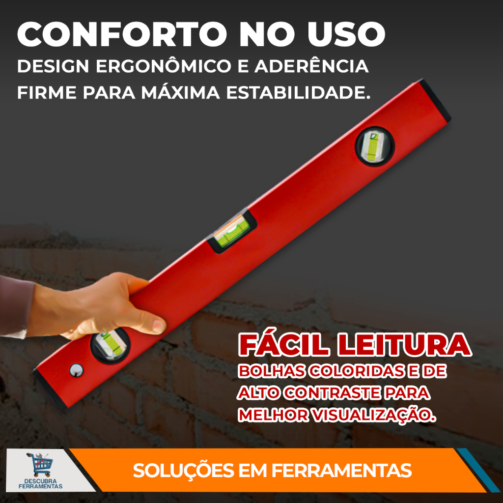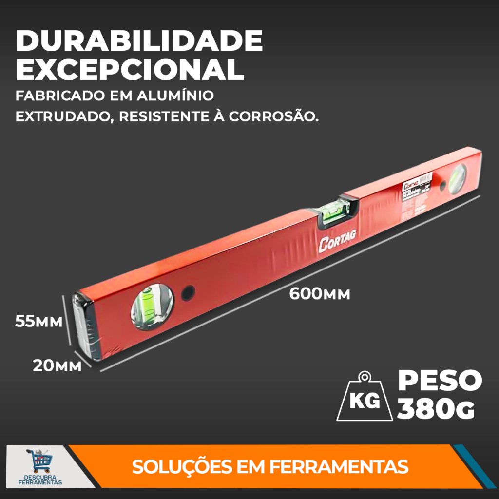 Nível de Alumínio Cortag Manual com Imã e sem Imã para Nivelar e Alinhar Superfícies C/ 3 Bolhas