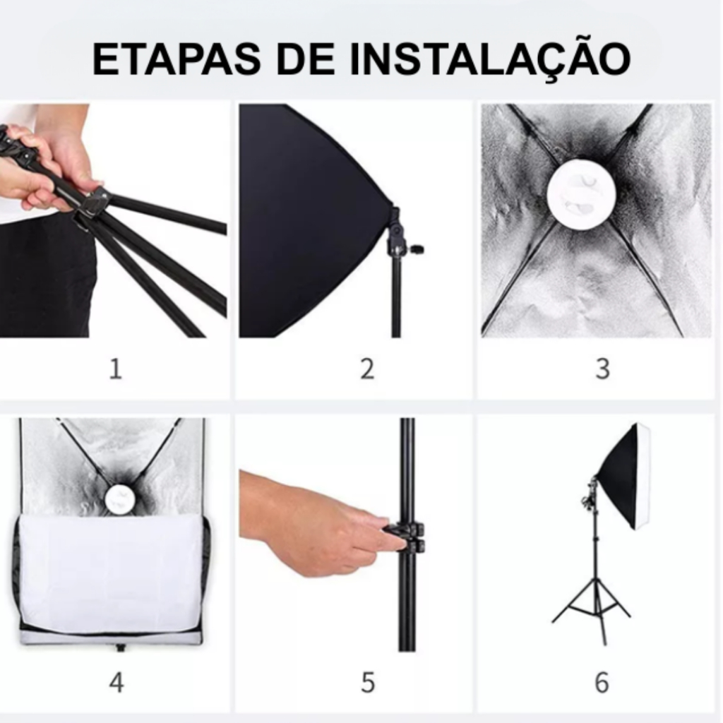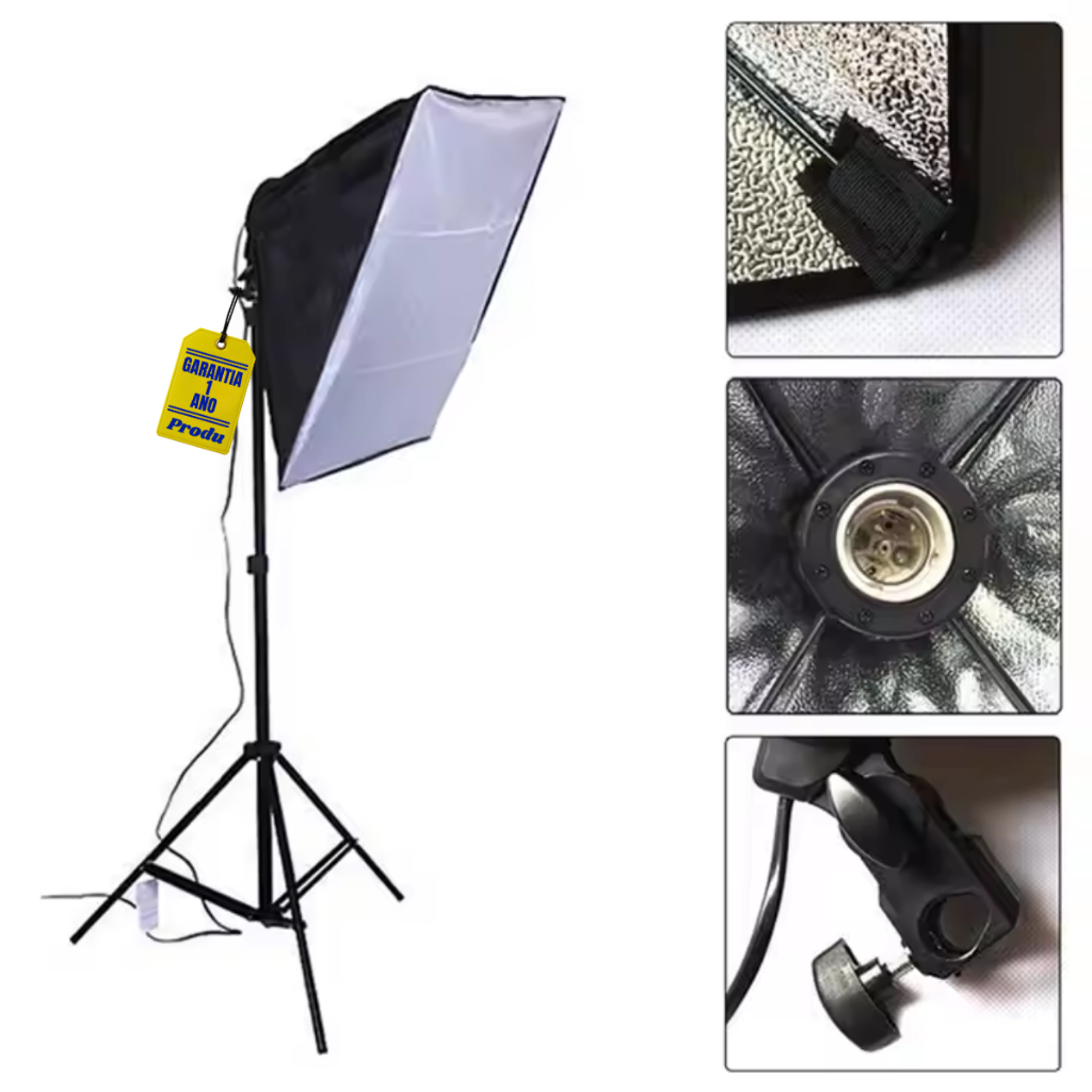 Softbox Profissional Tripé Iluminacao Estudio Continua E27 Sombrinha Difusora 50x70 Lampada
