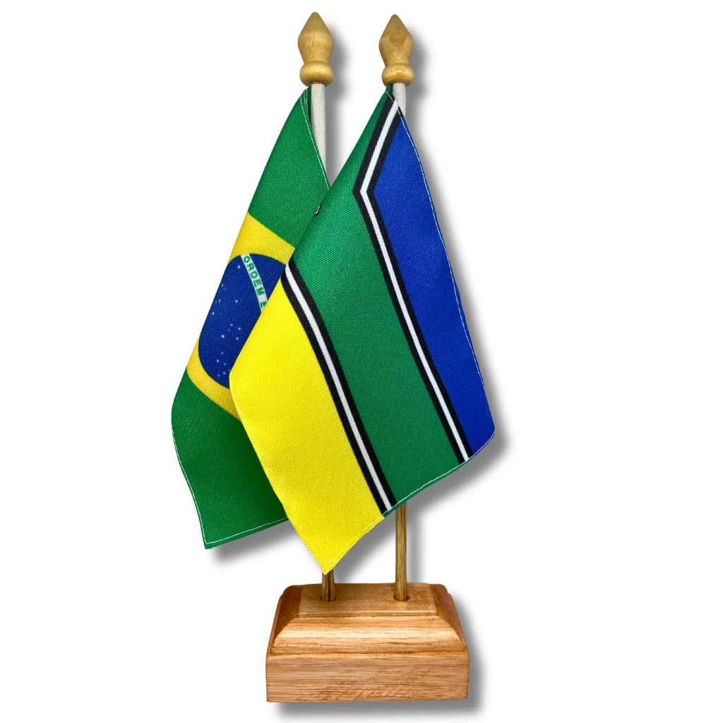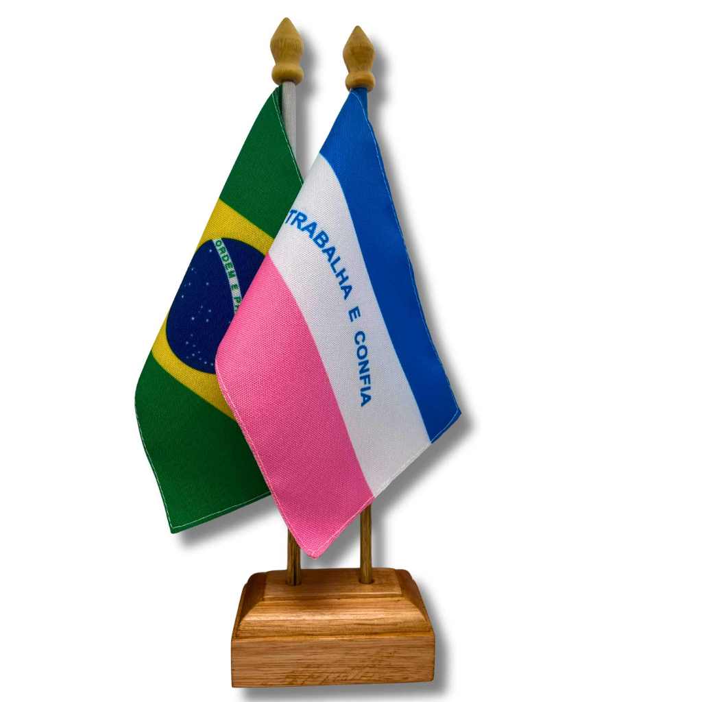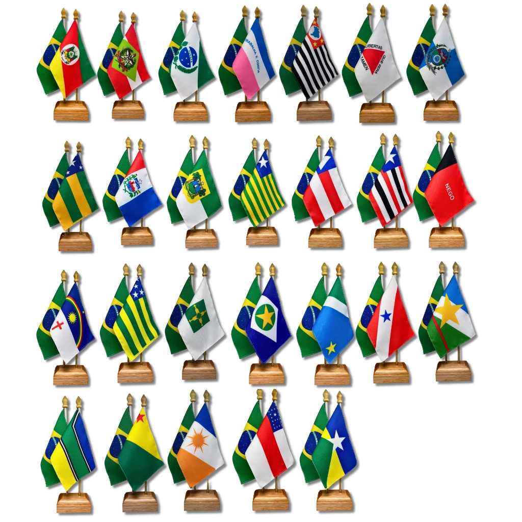 Kit Bandeirinhas De Mesa Madeira Elegance Brasil + Seu Estado