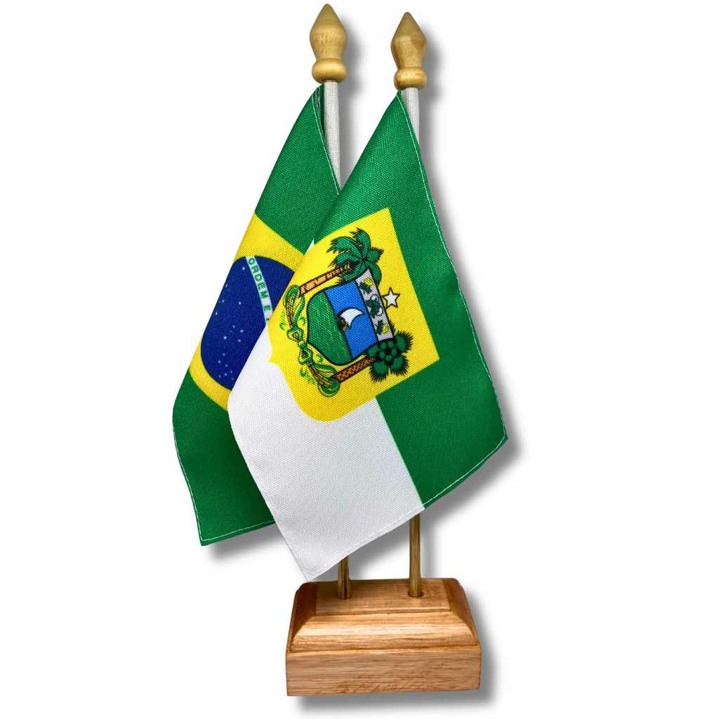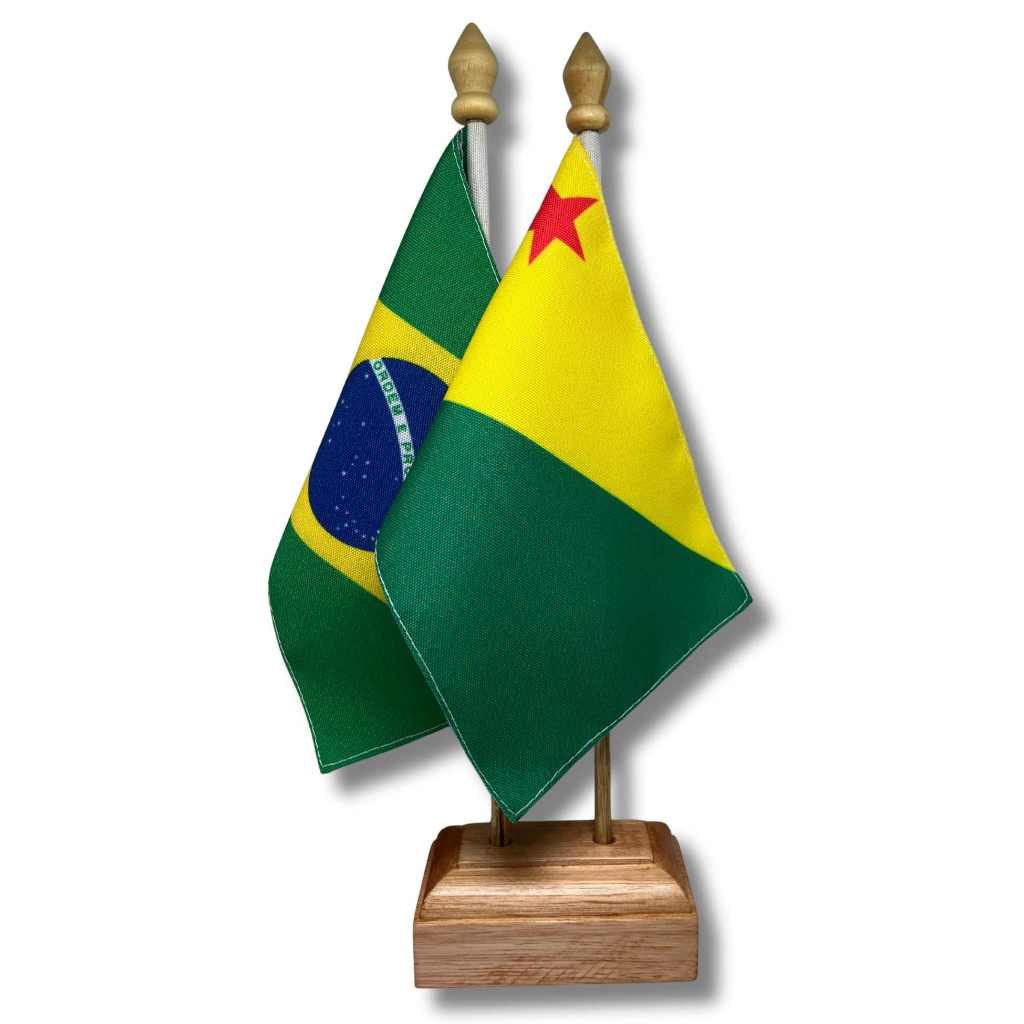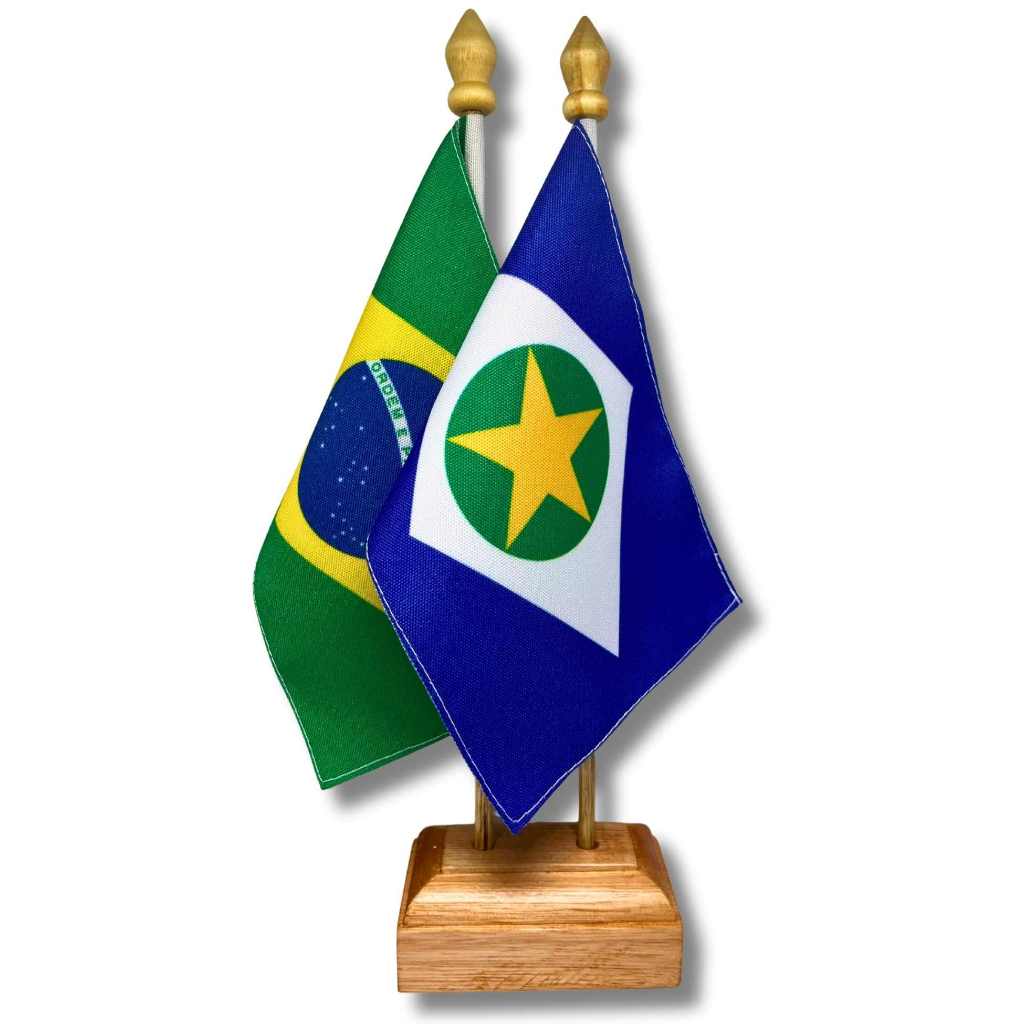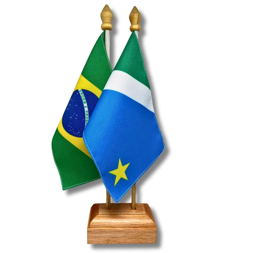 Kit Bandeirinhas De Mesa Madeira Elegance Brasil + Seu Estado