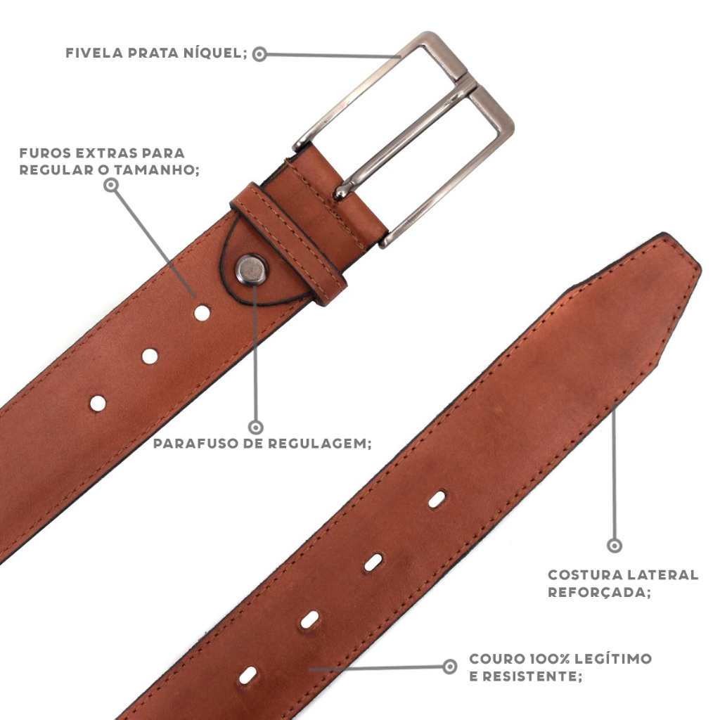 Kit Carteira Masculina Couro Legítimo Cinto Social Original