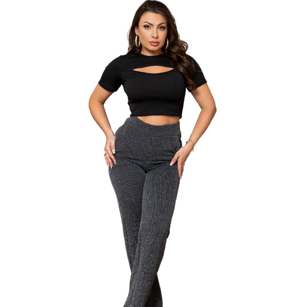 Cropped Vazado Feminino em Canelado Premium