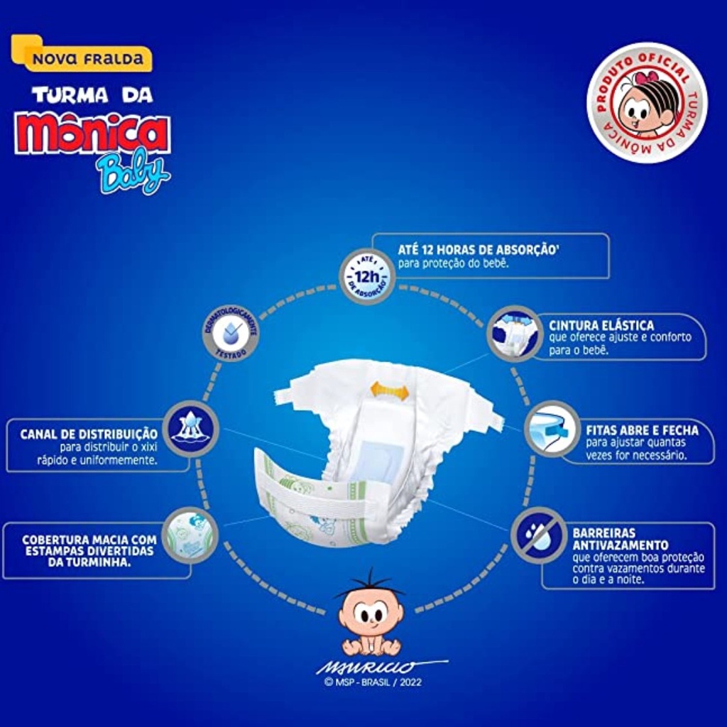 Fralda Descartável Turma da Mônica Baby QuatroSec Vários Tamanhos- 01 Unidade