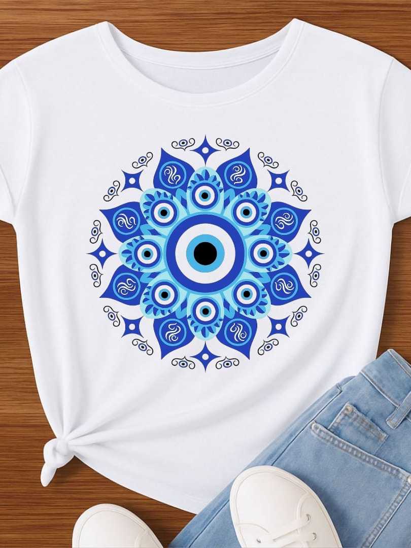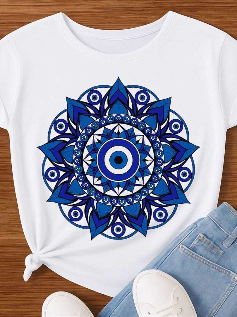 Camiseta Olho Grego Mandala Proteção Estampa Azul – Feminina/Proteção/Espiritualidade