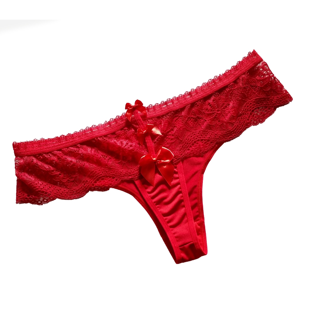 Calcinha Fio 3 Lacinhos Detalhe em Renda Luxo CA3PL022