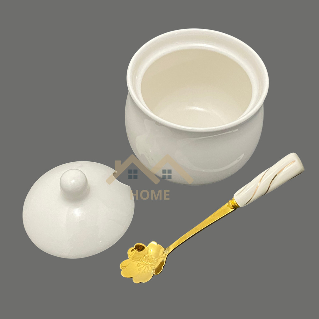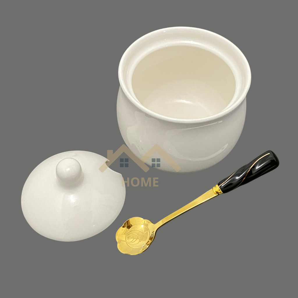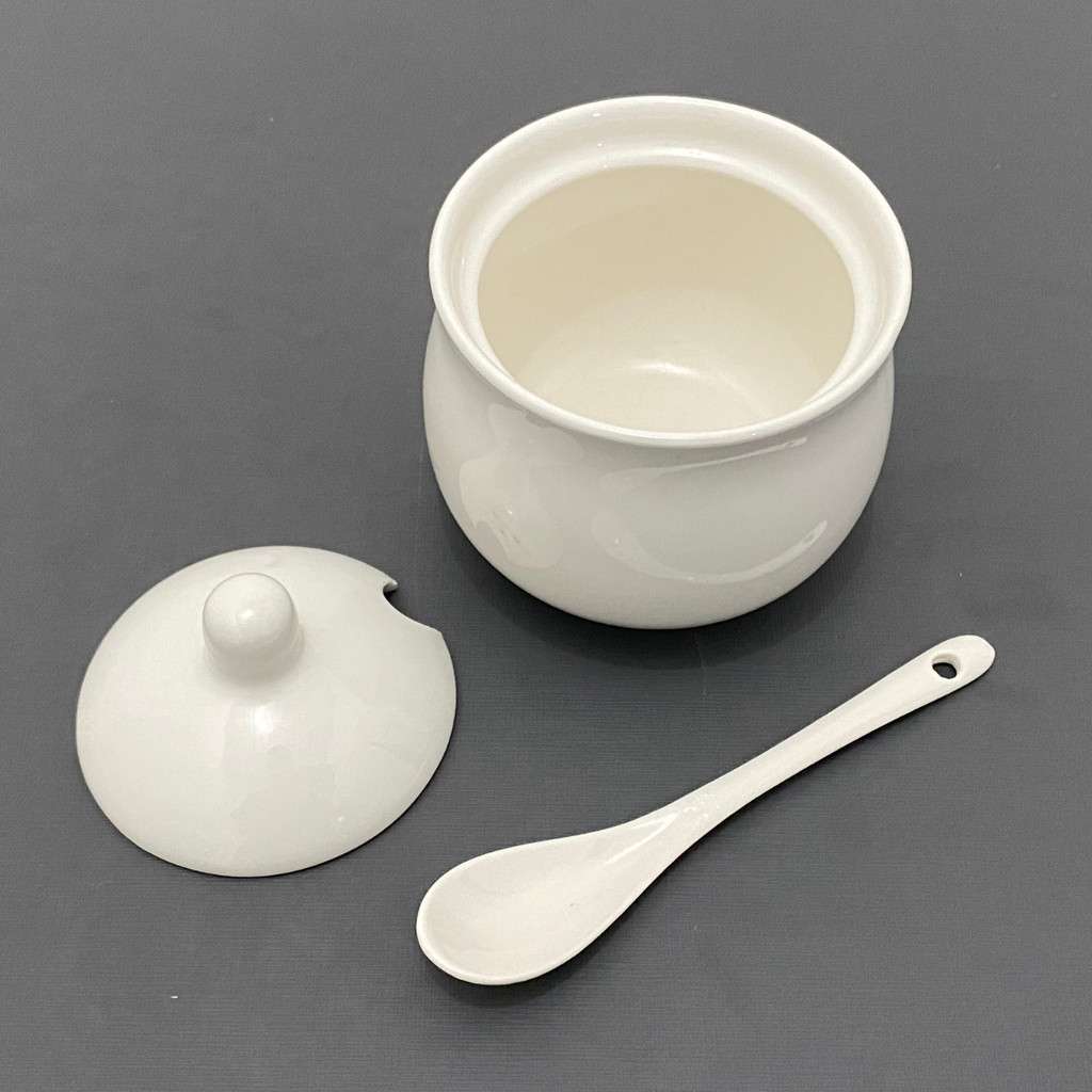 Pote de Porcelana Branca Multiuso Tampa e Colher Açucareiro, Saleiro e Temperos