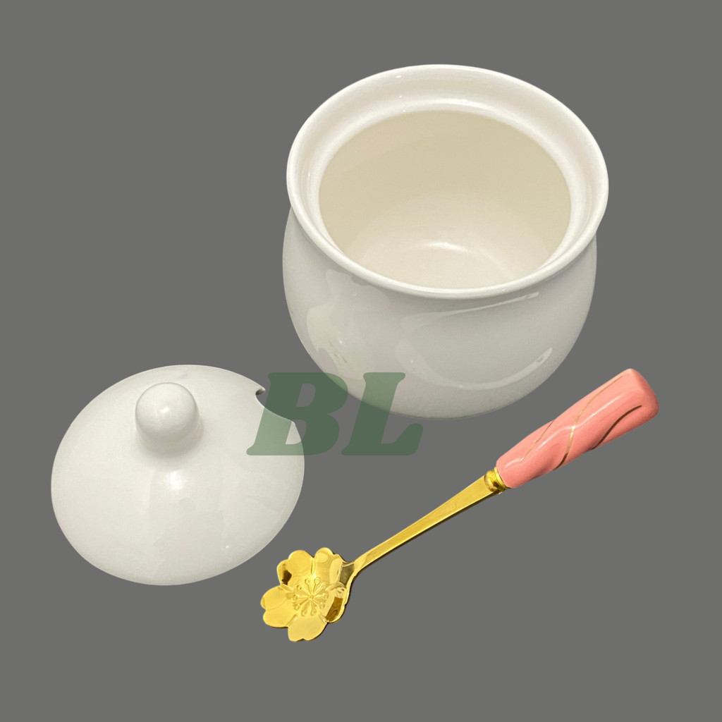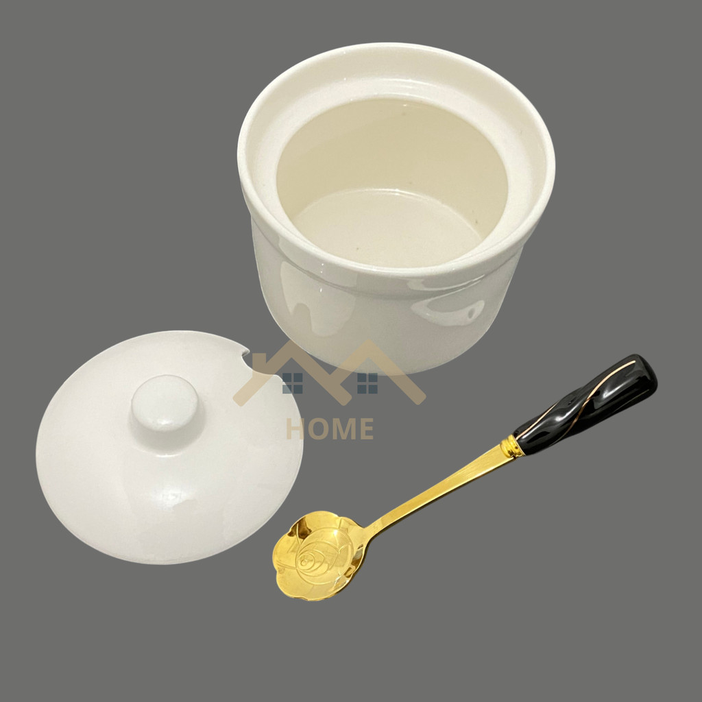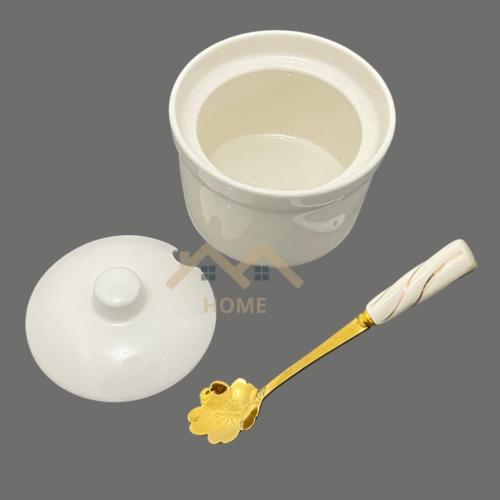 Pote de Porcelana Branca Multiuso Tampa e Colher Açucareiro, Saleiro e Temperos