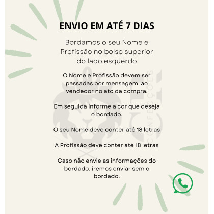 Jaleco Feminino Oxford Branco Botão Gola Padre Manga Longa Com Punho Personalizado + BORDADO SEU NOME E PROFISSÃO