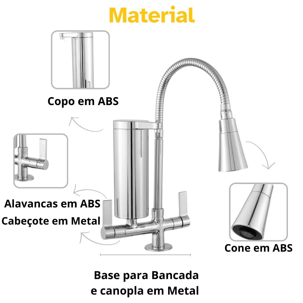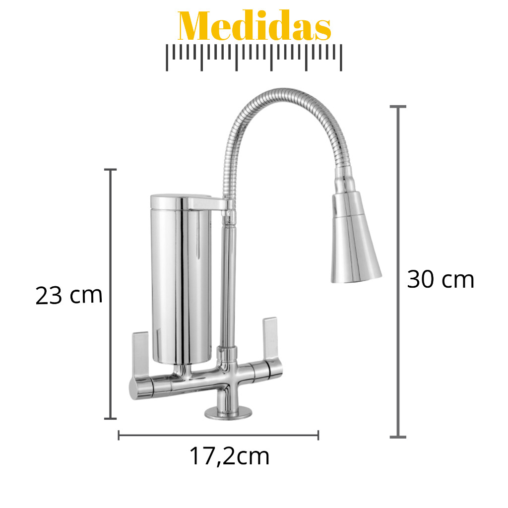 Torneira de Filtro Slim para Cozinha Cromada de Bancada Mesa Metal Abs