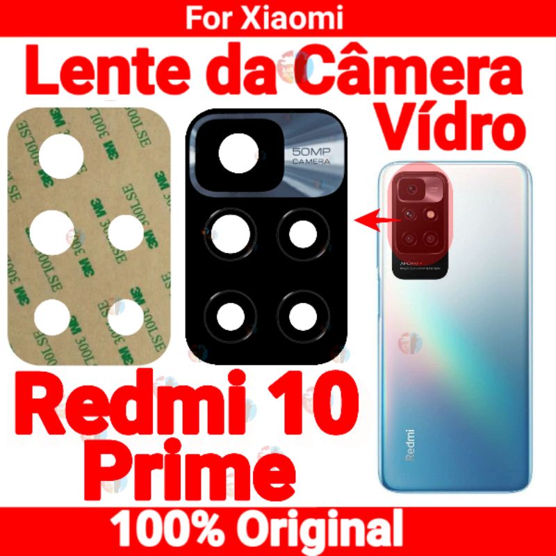 Vidro da Camera Xiomi Redmi 10 Prime Lente da Câmera Traseira Vidrinho Traseiro Original