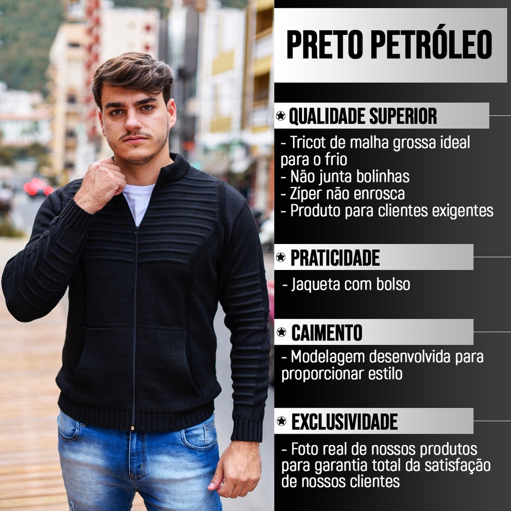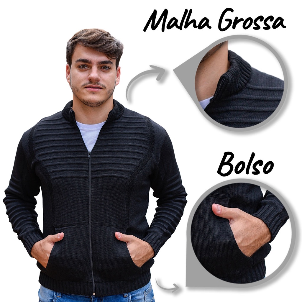 Jaqueta Casaco De Inverno Frio Masculino Com Bolso E Ziper Tricot