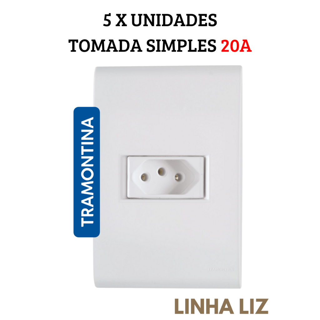 Kit 5 Tomada Simples 2PT+T 20A 4X2 Embutir Linha Liz Tramontina