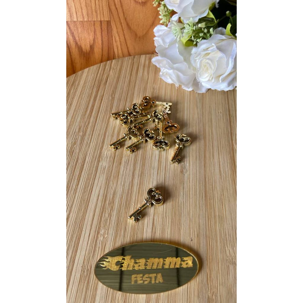 Aplique Chave dourada 1,5cmx3cm 10 Unid Ou Mais