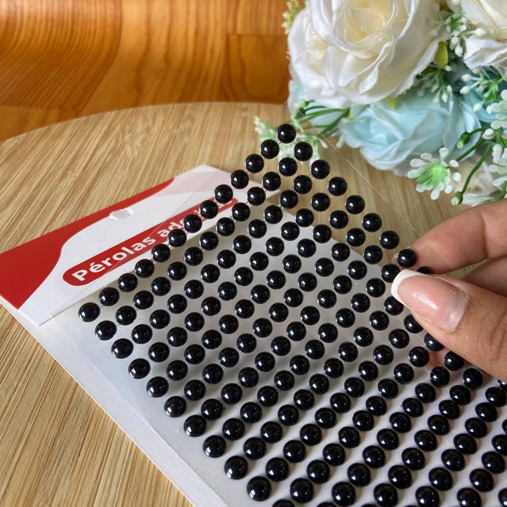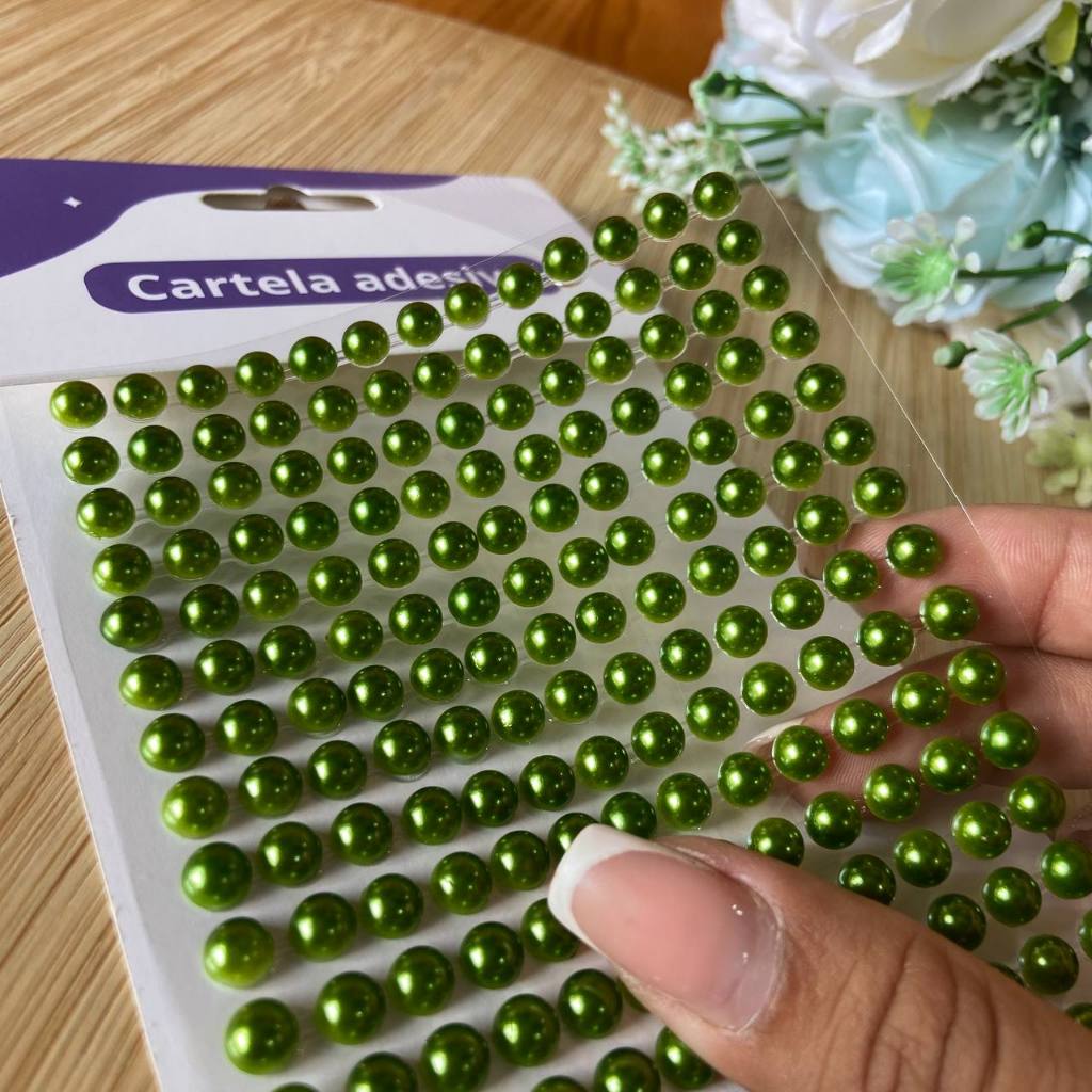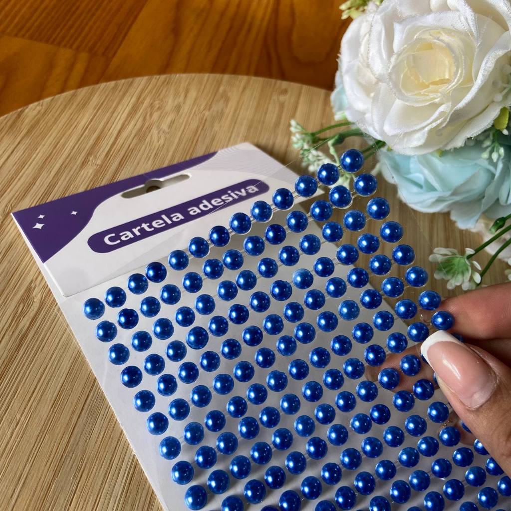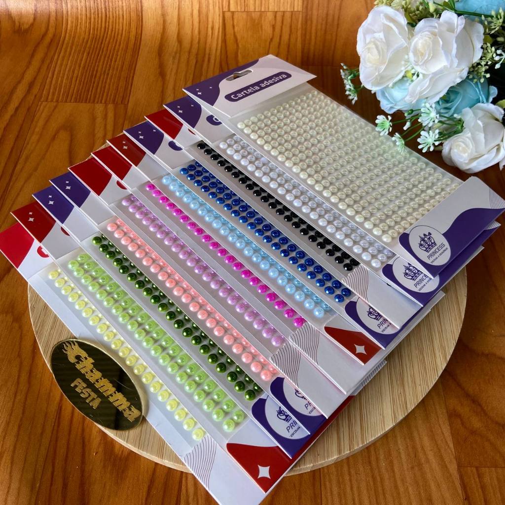 Cartela adesiva meia Pérola 6mm; Cartela adesiva
