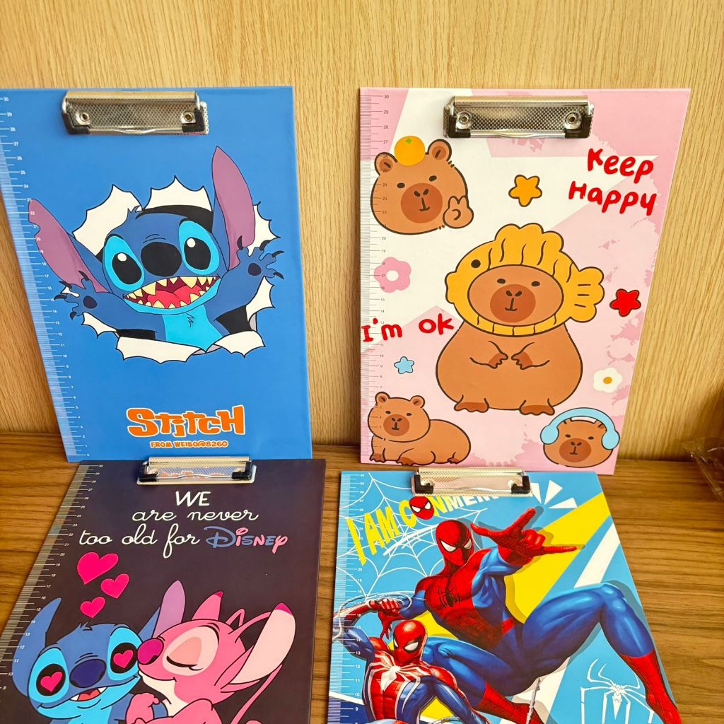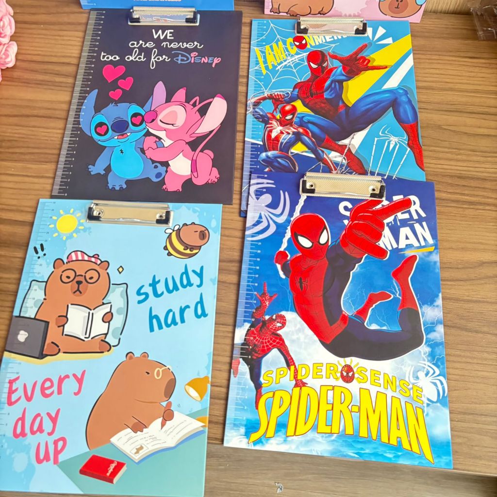 Prancheta Decorada homem aranha ,Stitch e capivara Oficio A4 Prendedor Metálico