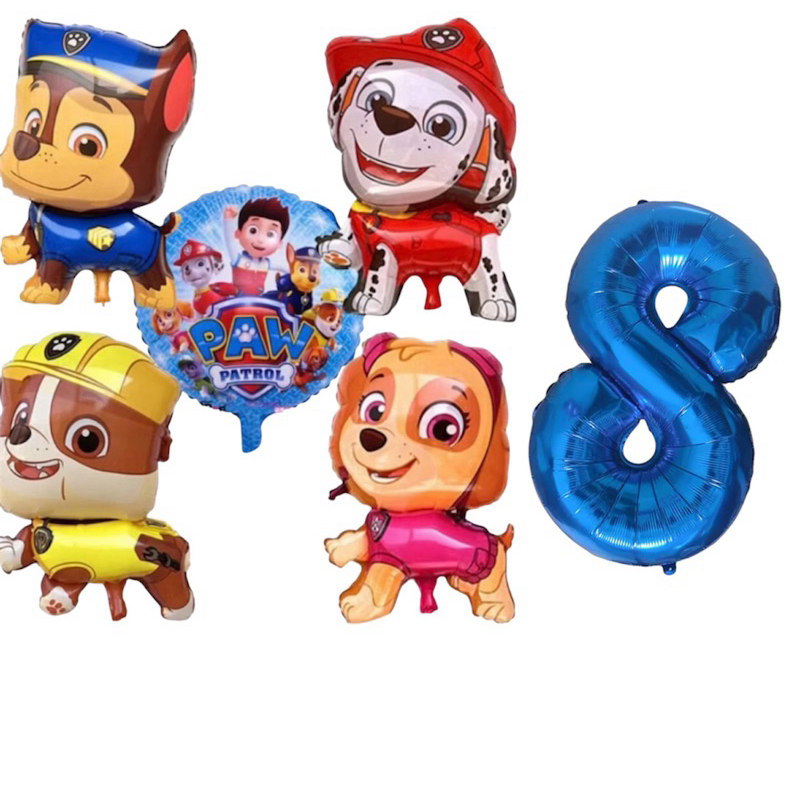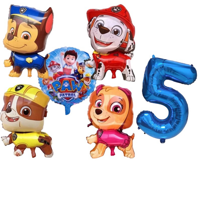 Kit 5 Balão Patrulha Canina Gigante Redondo + 1 Número 40cm