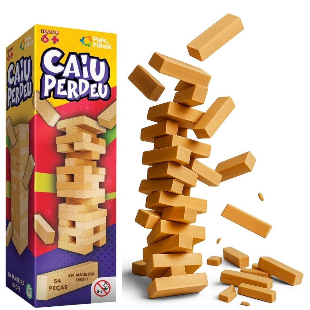 Jogo Caiu Perdeu Torre Madeira Equilíbrio Brinquedo Pais & Filhos