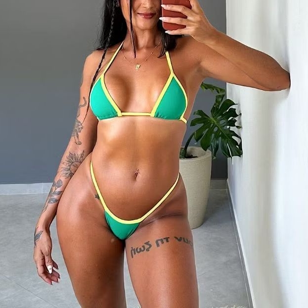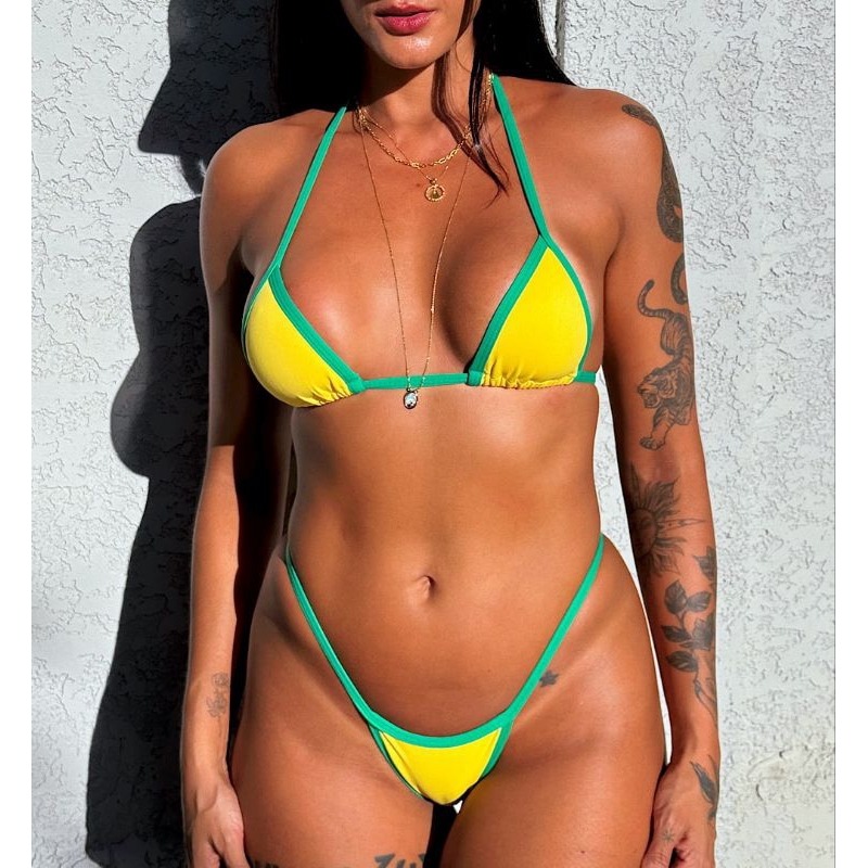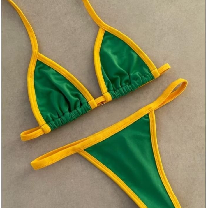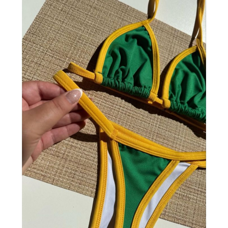 biquini Brasil fita cortininha bicolor fio dental copa bronze
