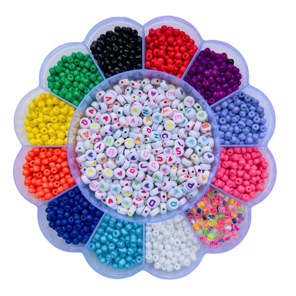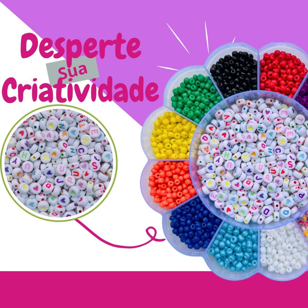 Kit Miçangas de vidro infantil pulseira colar + Silicone Completo colorido entremeio aprox 2600 pçs