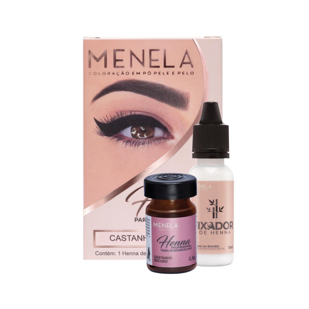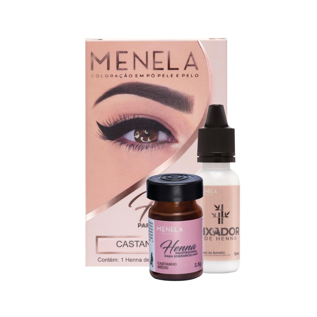 Kit 3 Henna Profissional Sobrancelhas Menela Preto + Castanho Medio + Castanho Escuro