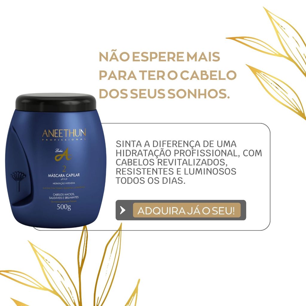 Máscara Capilar Aneethun 500g Linha A Brilho Nutrição e Recuperação