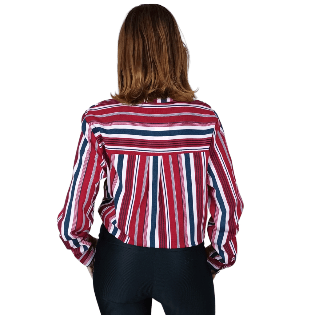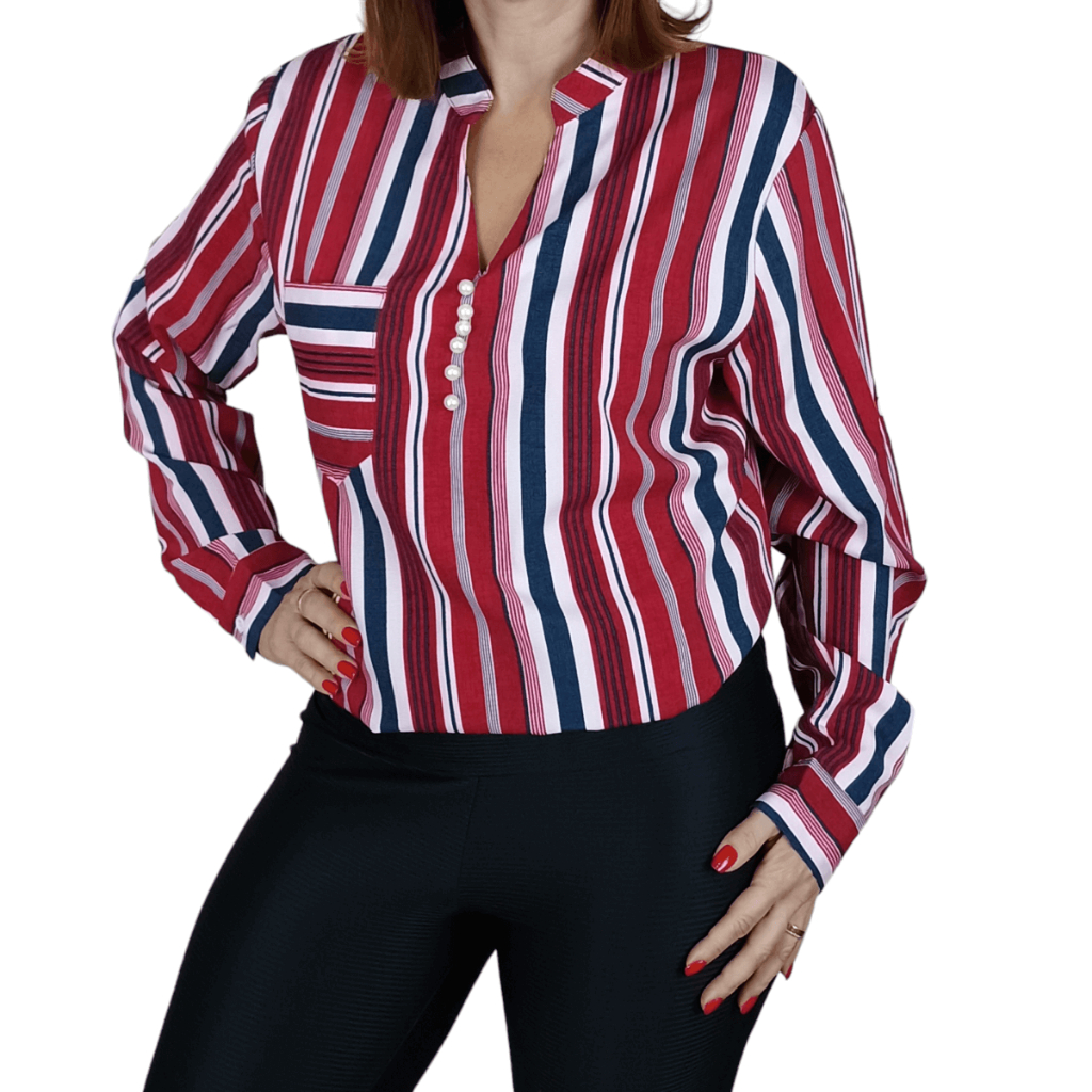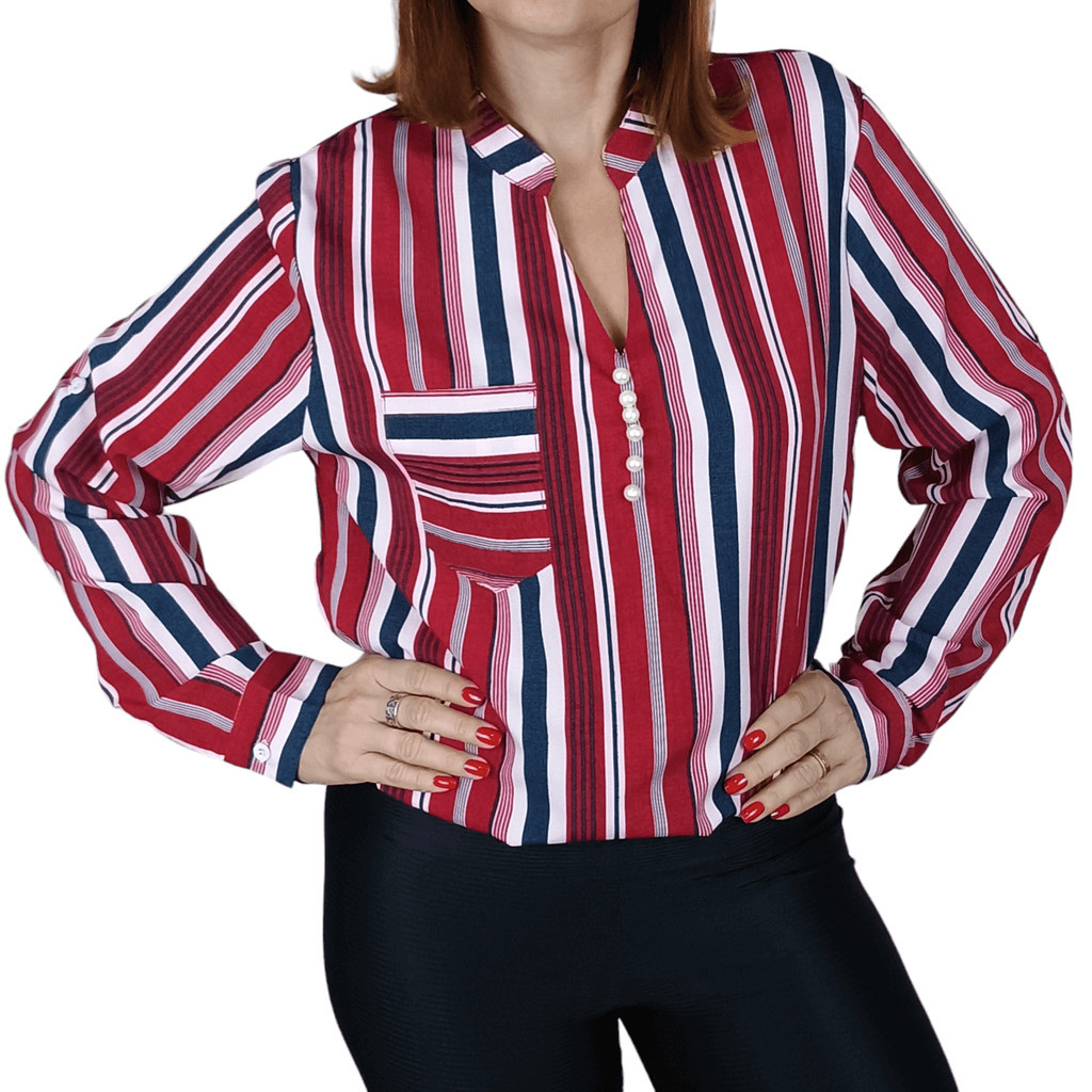 Camisa Feminina Listrada Elegante Social Manga Comprida Bolso
