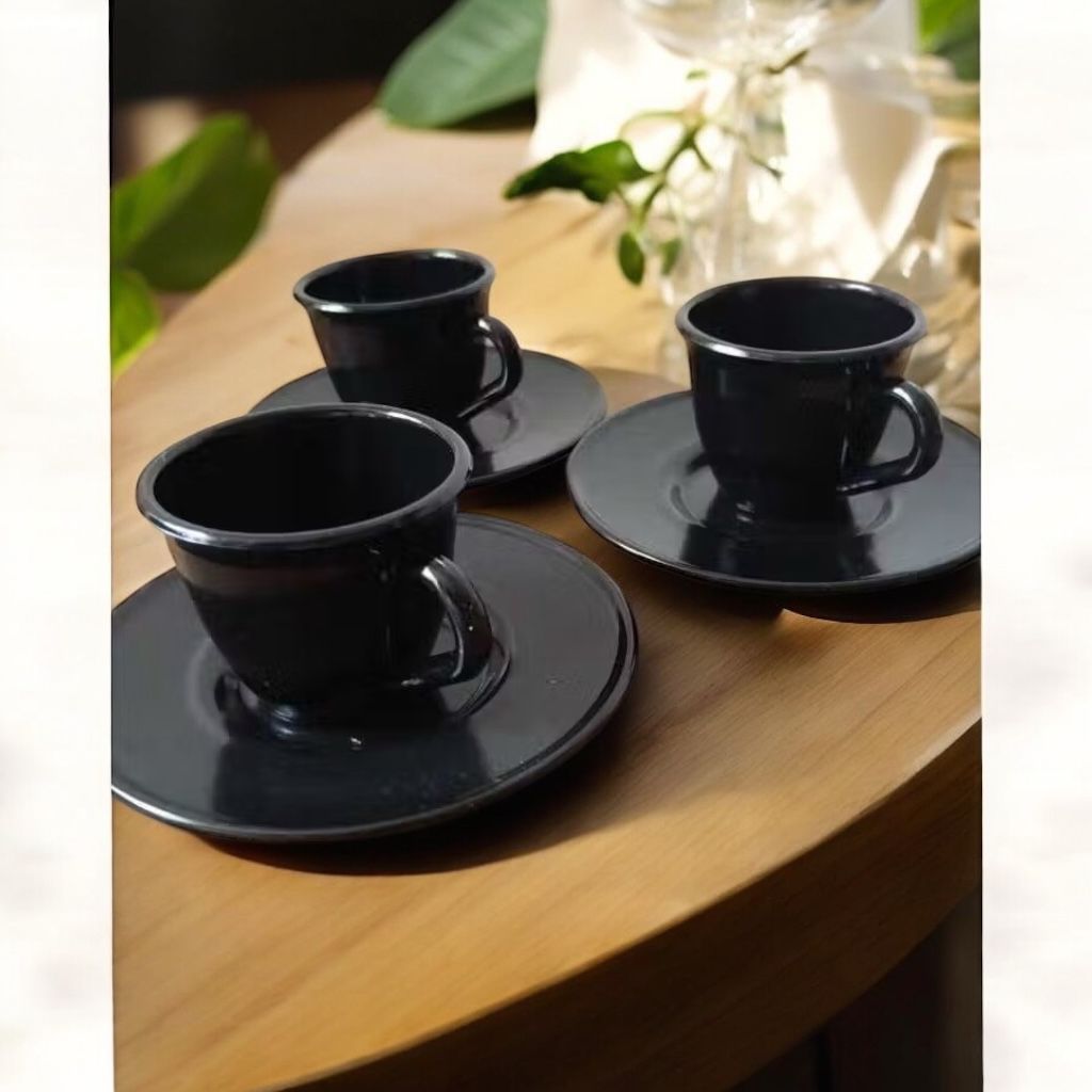Conjunto 08 peças 04 Xicaras Redondas Acrílicas 70ml com 04 Pires Redondos