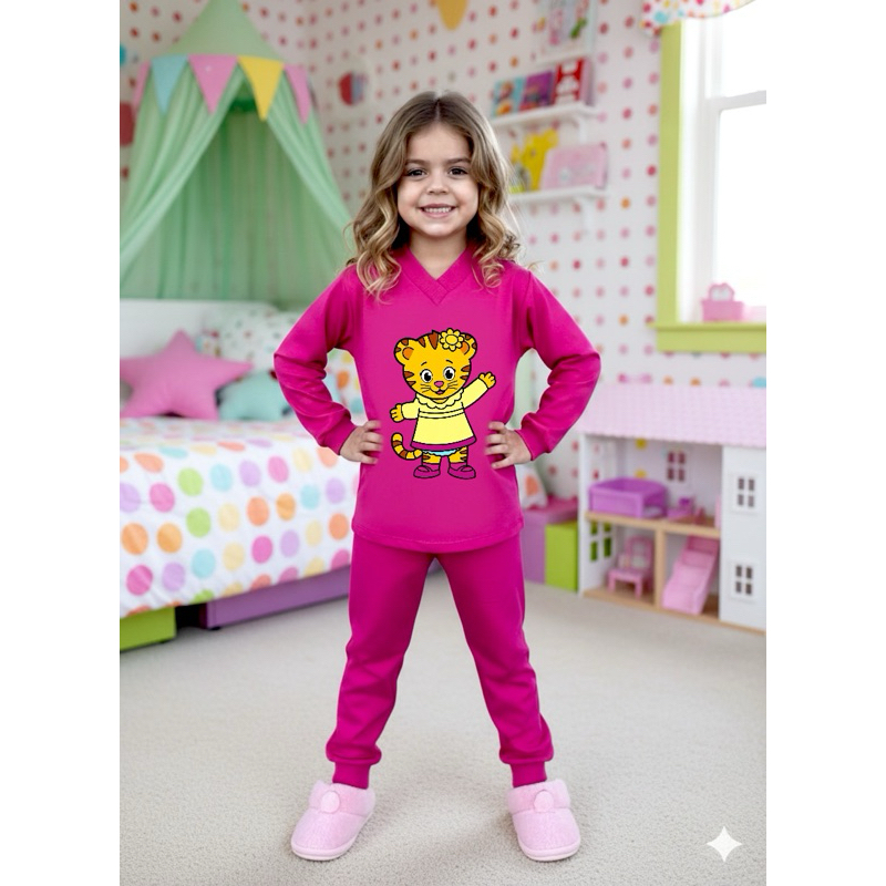 Pijama Infantil Bebê Criança Longo - Manga Longa e Calça - Daniel o Tigre Menino e Menina